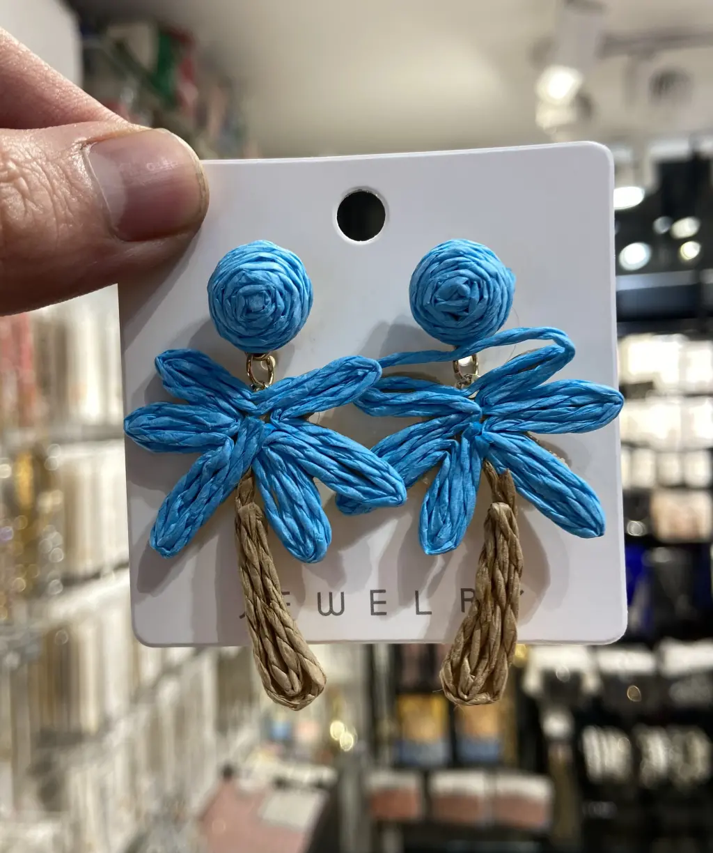 Doğanın zarafetini ve modern tasarımı bir araya getiren Gleam Palmiye Ağacı Küpe, mavi renkli örgü detayıyla öne çıkıyor.