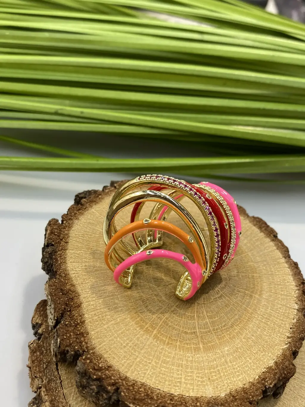 Kullanım kolaylığı sağlayan sıkıştırmalı yapısı kulağa rahatça oturur ve gün boyu kaymadan kullanılabilir. Günlük stilinizi renklendirmek ya da sade kombinlere canlı bir dokunuş eklemek istiyorsanız Pembe Turuncu Kırmızı Taşlı Sıkıştırmalı Earcuff Küpe, takı koleksiyonunuza enerji katacak özel bir parça olacaktır.