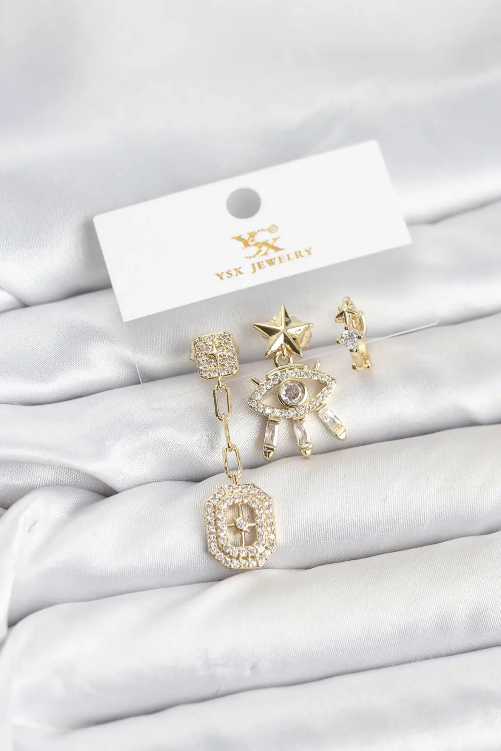 Çelik Gold Renk Göz ve Kutup Yıldızı Model YSX Trio Küpe Seti özel tasarım