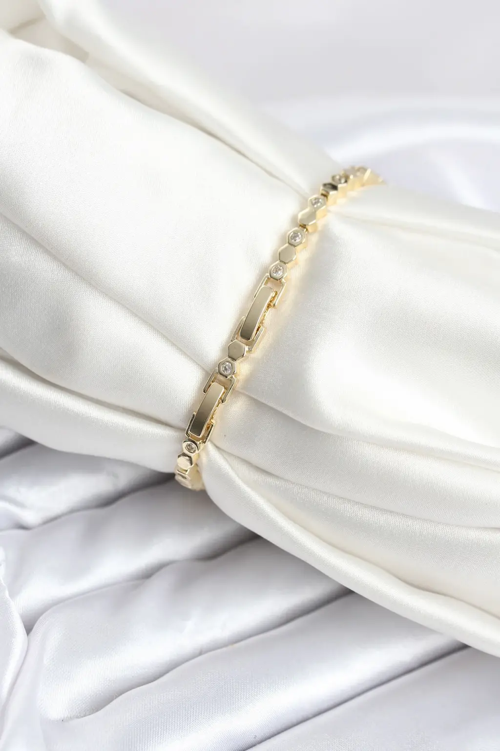 Pirinç Gold Renk İnce Petek Model Kadın Bileklik, zarif ve şık tasarımı ile Gleam markasının çelik bileklik kategorisindeki öne çıkan bir ürünüdür.