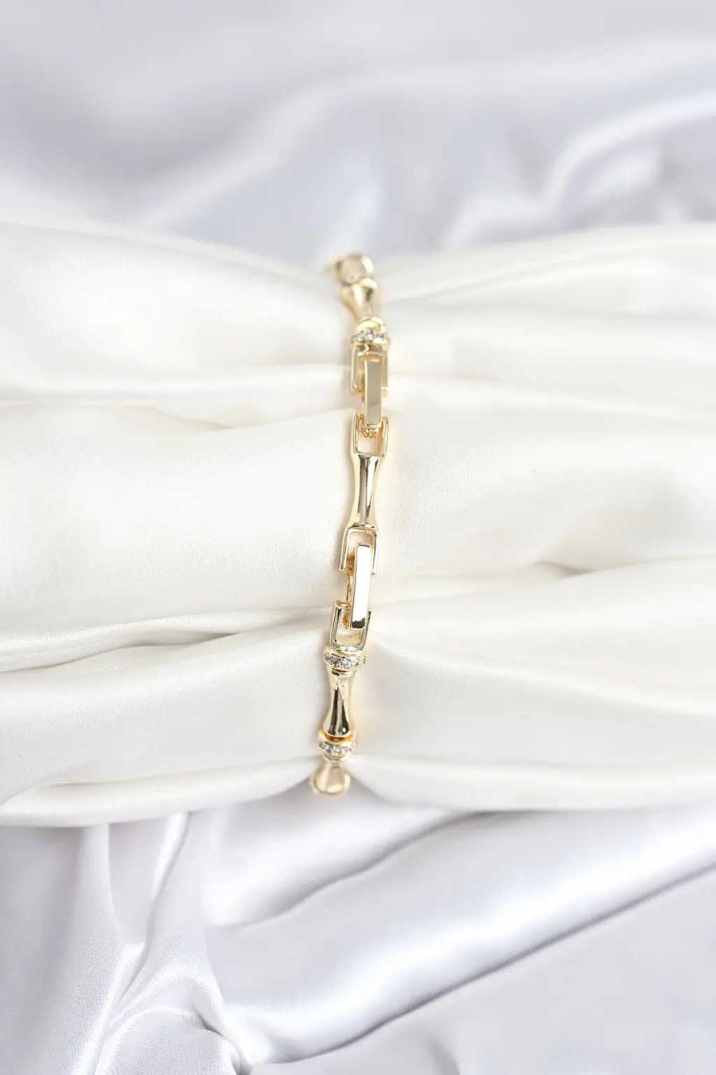 Tarzınızı tamamlayacak şık ve zarif bir aksesuar arıyorsanız Pirinç Gold Renk Kemik Model Zirkon Taşlı Kadın Bileklik tam size göre!
