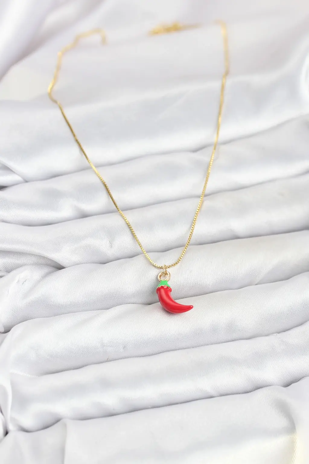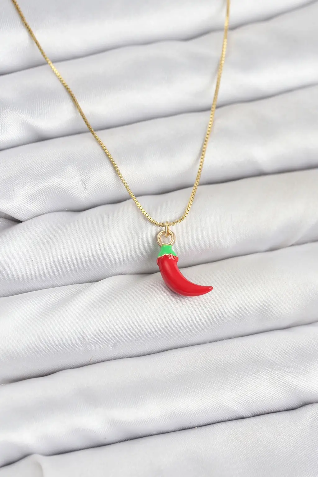 Çelik Gold Renk Kırmızı Kapya Biber Model Kadın Kolye özel tasarım