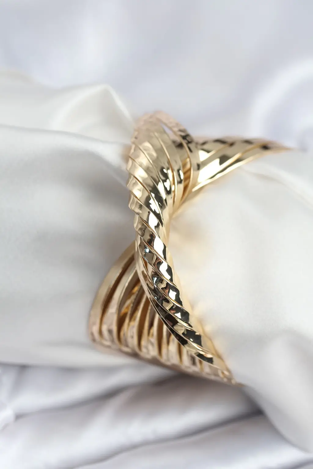 Altın rengi ve kıvrımlı yapısıyla fark yaratan Pirinç Gold Renk Kıvrımlı Yarım Kelepçe Bileklik, tüm gözleri üzerinize çekmeye hazır!