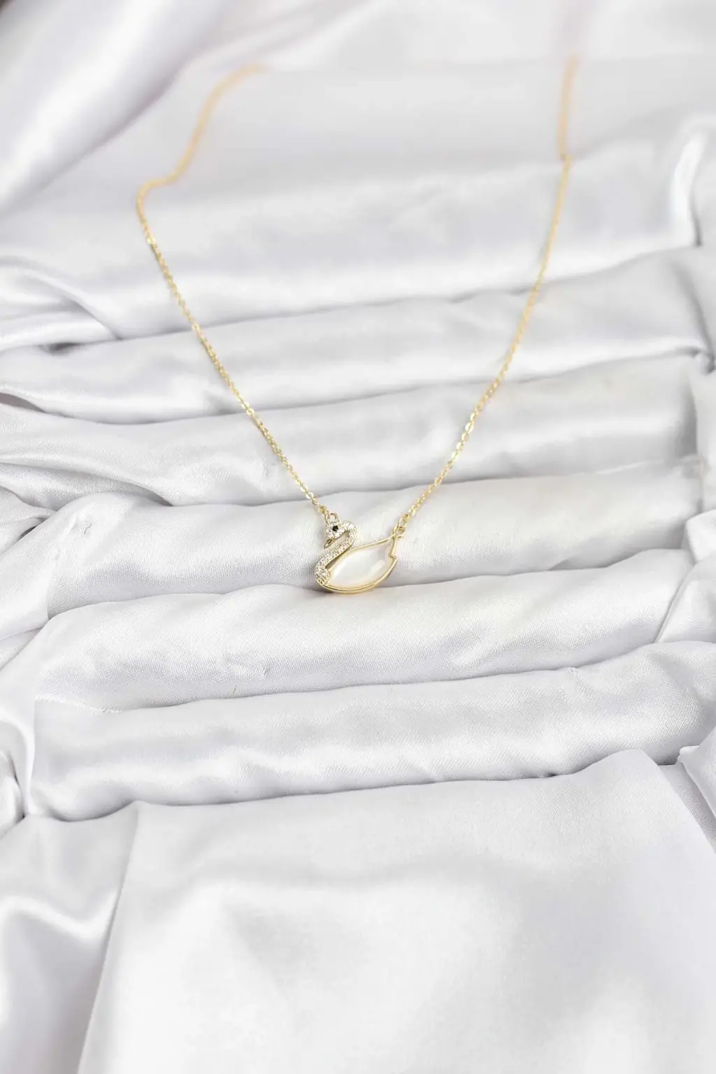 Gleam markasının muhteşem Pirinç Gold Renk Kuğu Model Kadın Kolyesi, şıklığı ve zarafeti bir arada sunuyor.