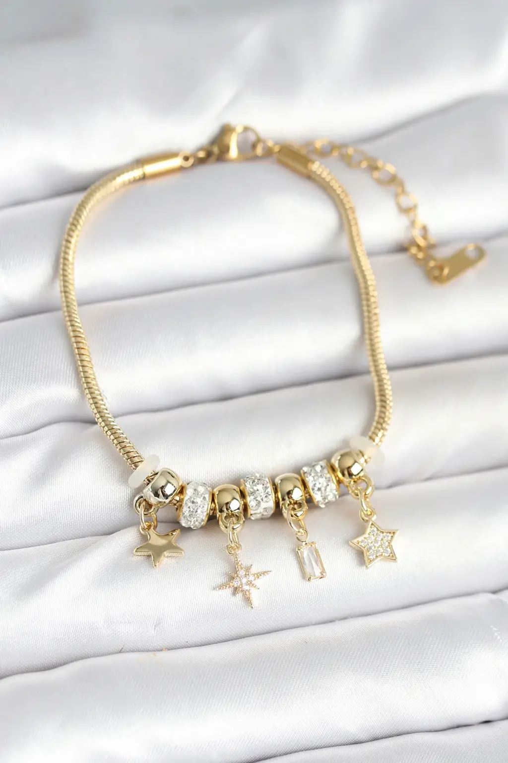 Pirinç Gold Renk Kutup Yıldızı Charmlı Kadın Bileklik Zarif detaylarla, göz alıcı tasarımlarla bezenmiş özel tasarım