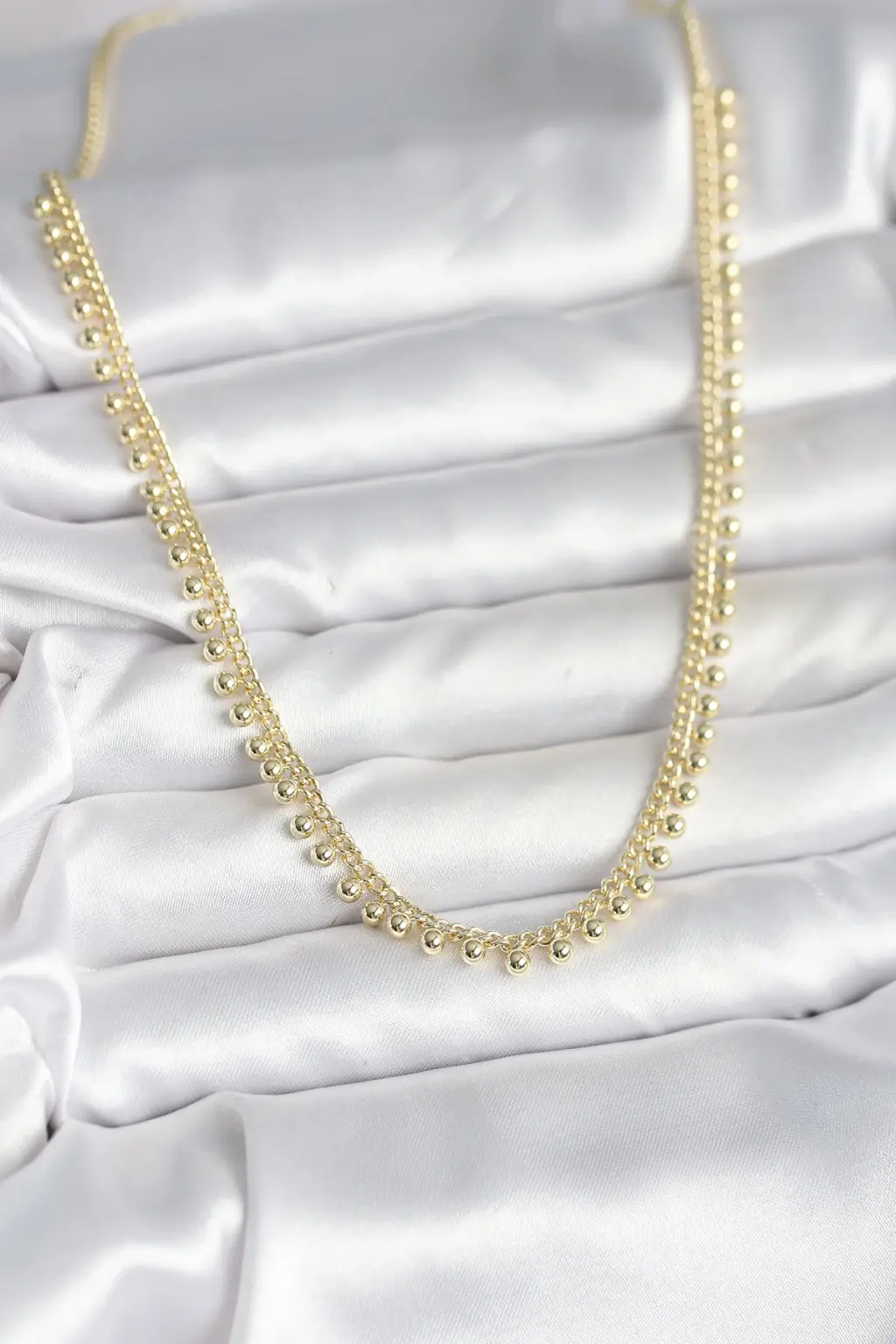 Kendi takı koleksiyonunuzda veya sevdiklerinize hediye olarak düşünebileceğiniz Gleam Pirinç Gold Renk Sıralı Topçuk Model Kadın Kolye, kaliteli ve şık bir tercihtir.
