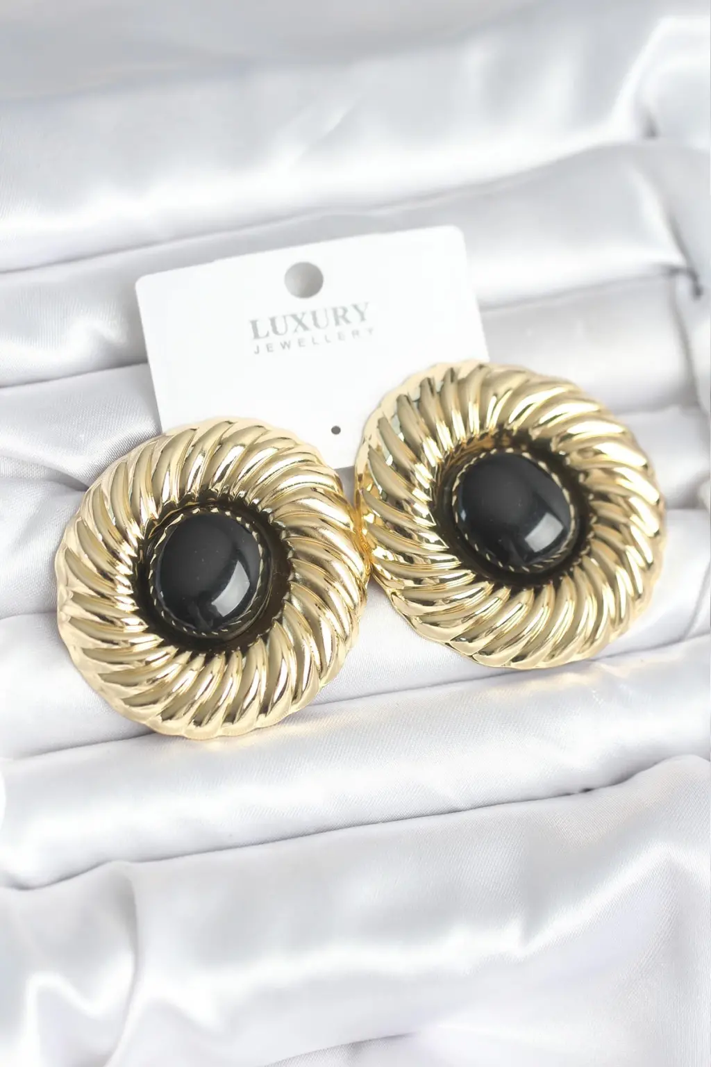 Pirinç Gold Renk Siyah Boncuklu Vintage Kadın Küpe, tarzınıza zarafet ve şıklık katacak bir aksesuardır. Gleam markasının özel tasarımı olan bu çelik küpeler, vintage tarzı sevenler için ideal bir seçenektir.