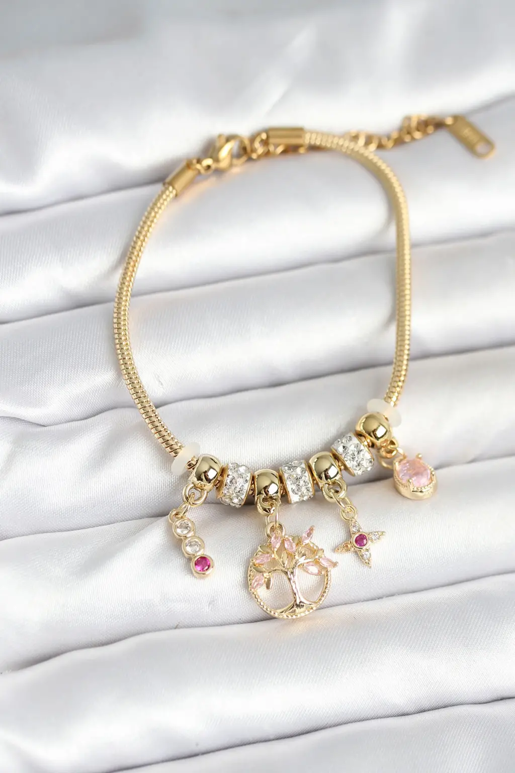 Pirinç Gold Renk Yaşam Ağacı Charmlı Kadın Bileklik Zarif detaylarla, göz alıcı tasarımlarla bezenmiş özel tasarım