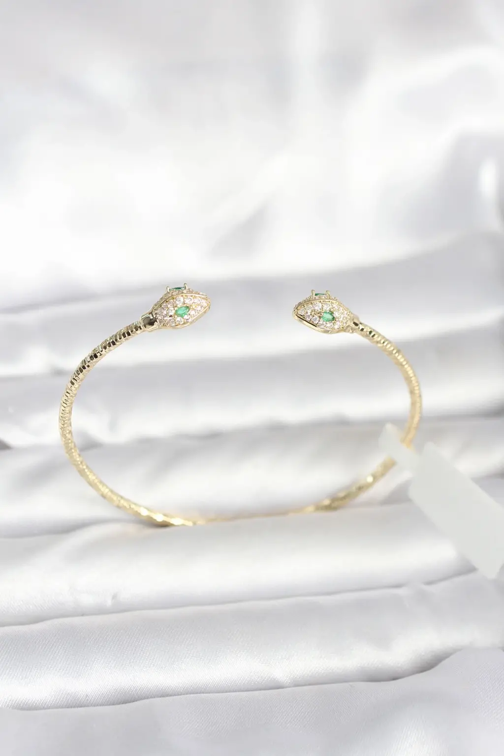 Pirinç Gold Renk Yılan Model Kelepçe Bileklik Zarif detaylarla, göz alıcı tasarımlarla bezenmiş özel tasarım