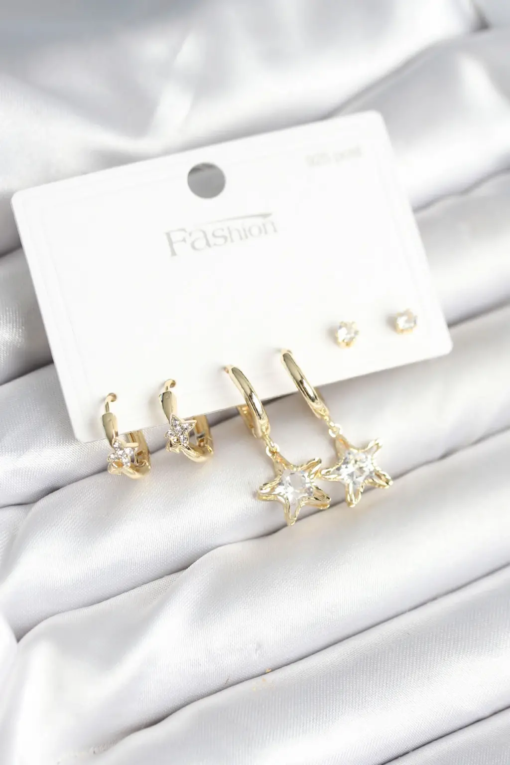 Küpe, her kombinin tamamlayıcı parçasıdır Pirinç Gold Renk Yıldız Model 925 Gümüş Çivili Kadın Küpe Seti tam size göre. Gleam'in