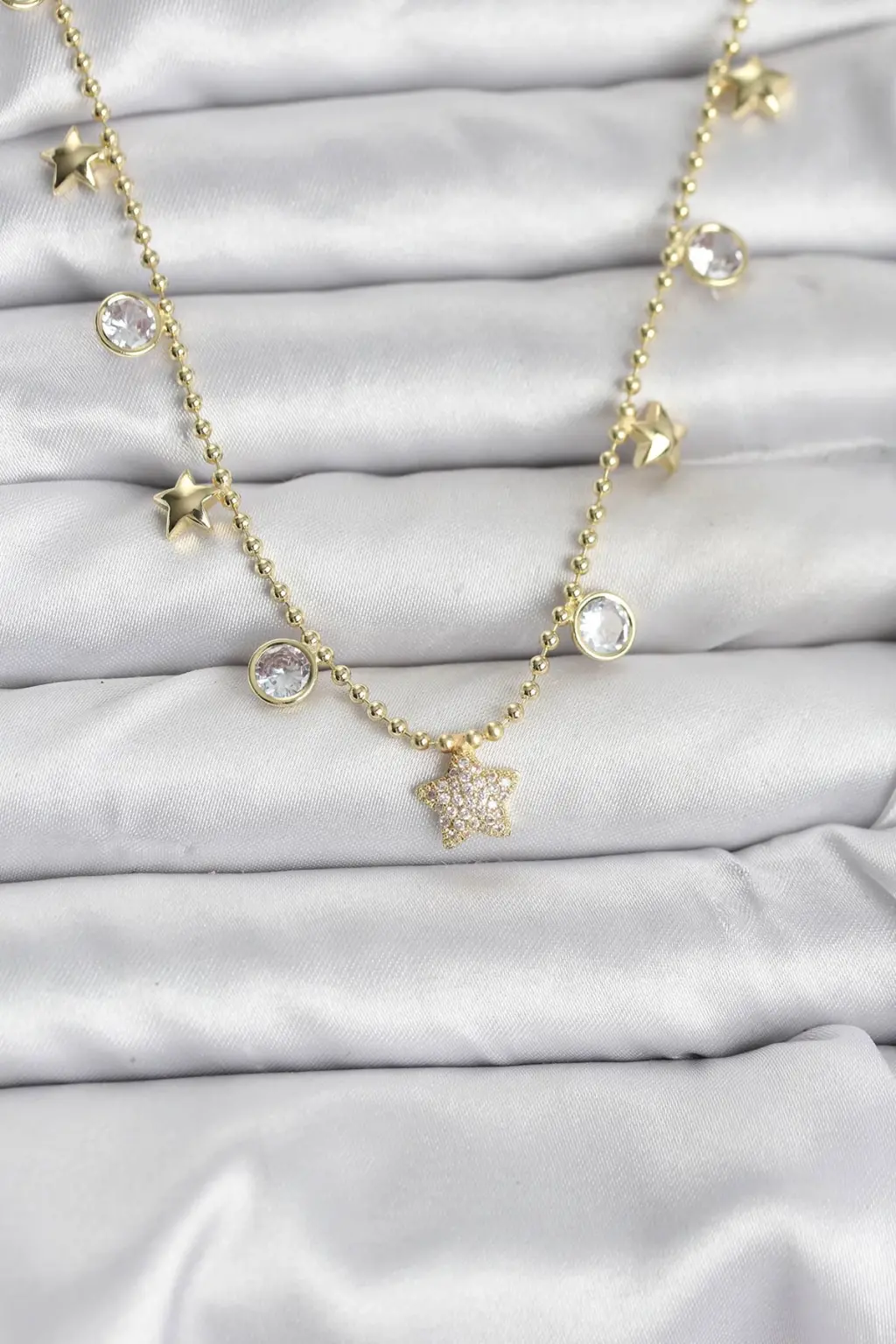 Pirinç Gold Renk Yıldız Model Kadın Kolye Zarif detaylarla, göz alıcı tasarımlarla bezenmiş özel tasarım