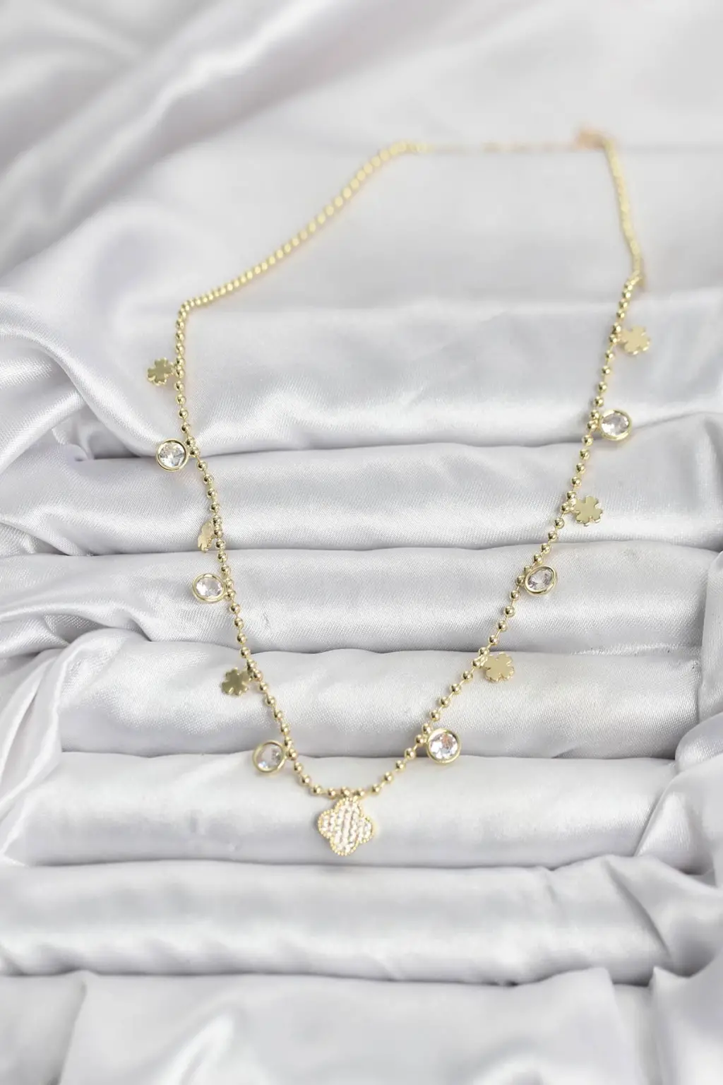 Pirinç Gold Renk Yonca Model Kadın Kolye özel tasarım