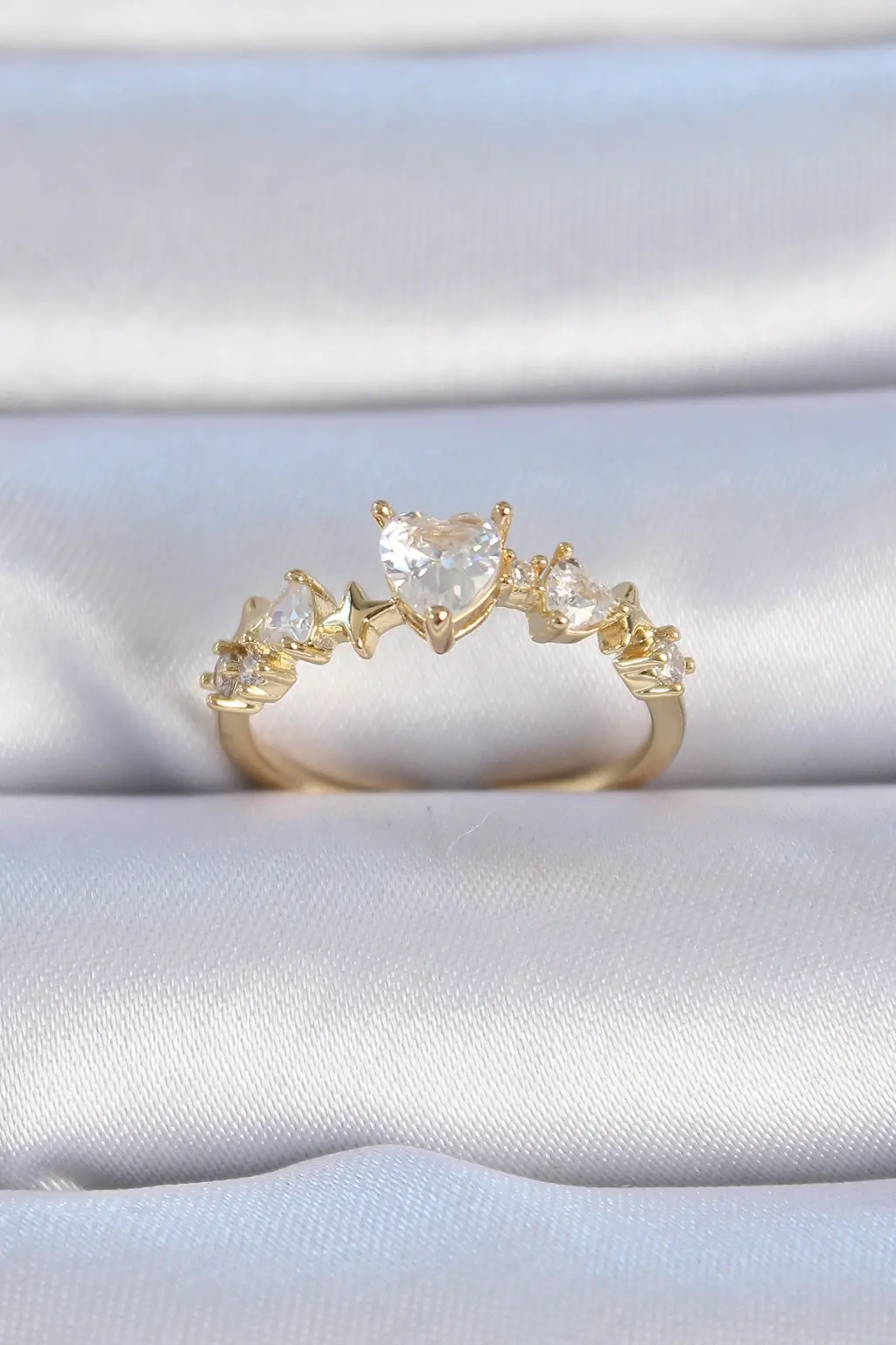 Yüzük Modellerimizden nadide bir parça Altın Zirkon Taş Kalp Model Çelik Yüzük ile parmaklarınızın ışıltısını tüm dünyaya göstermek istemez misiniz?