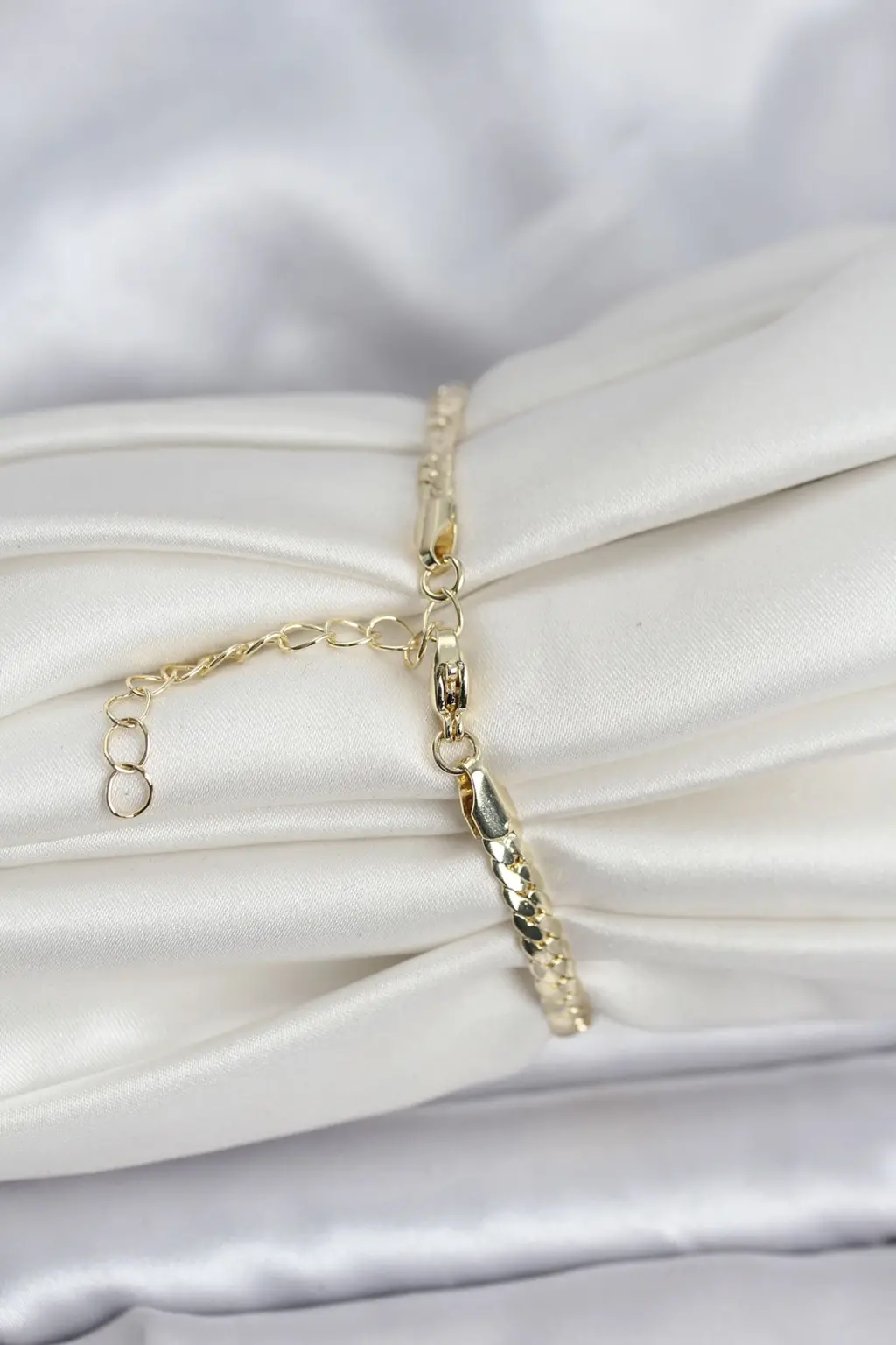 Bu benzersiz bileklik, yüksek kaliteli pirinç malzemeden üretilmiş olup, altın rengi kaplamasıyla dikkat çeker.