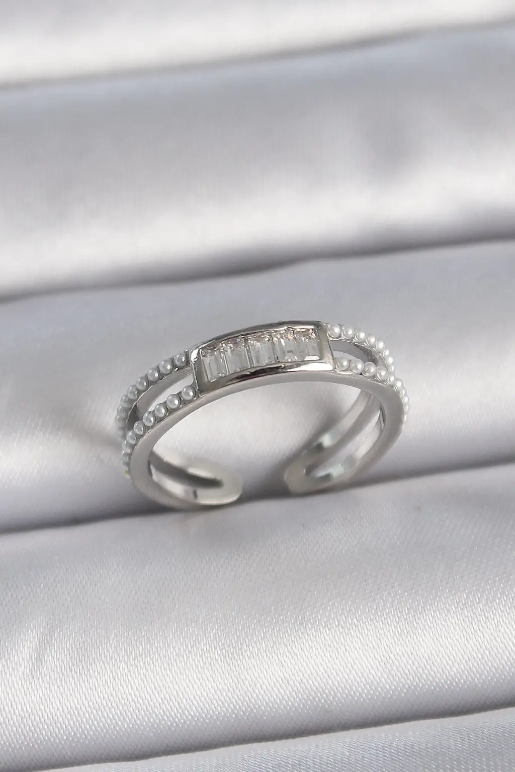 Yüzük Modellerimizden nadide bir parça Gümüş Ayarlanabilir Sıralı İncili Zirkon Taşlı Çelik Yüzük ile parmaklarınızın ışıltısını tüm dünyaya göstermek istemez misiniz?