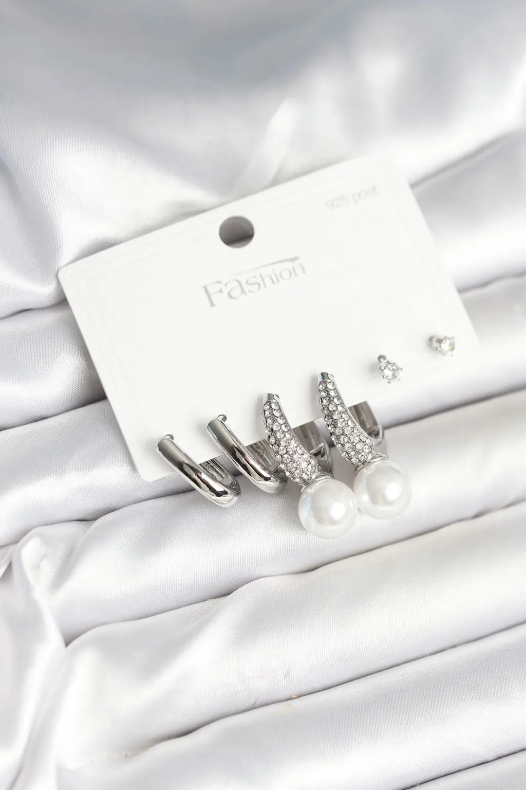 Pirinç Gümüş Renk İncili 925 Ayar Gümüş Çivi Kadın Küpe Seti Zarif detaylarla, göz alıcı tasarımlarla bezenmiş özel tasarım