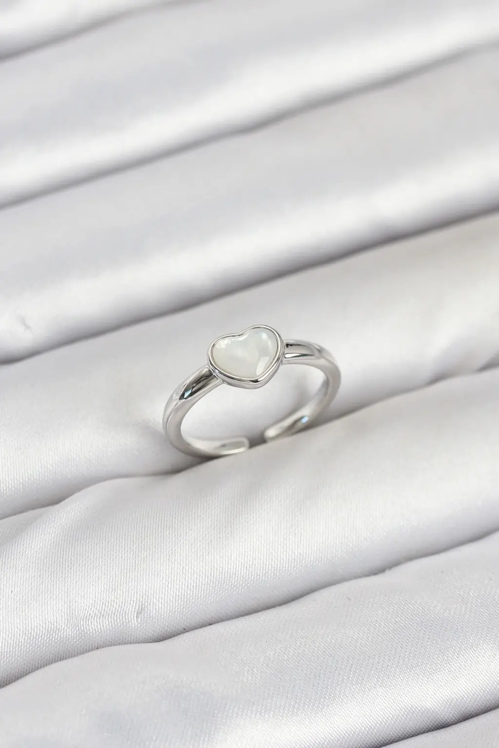 Pirinç Gümüş Renk Kalpli Kadın Yüzük, Gleam markasıyla tasarlanmış şık ve zarif bir yüzük modelidir.