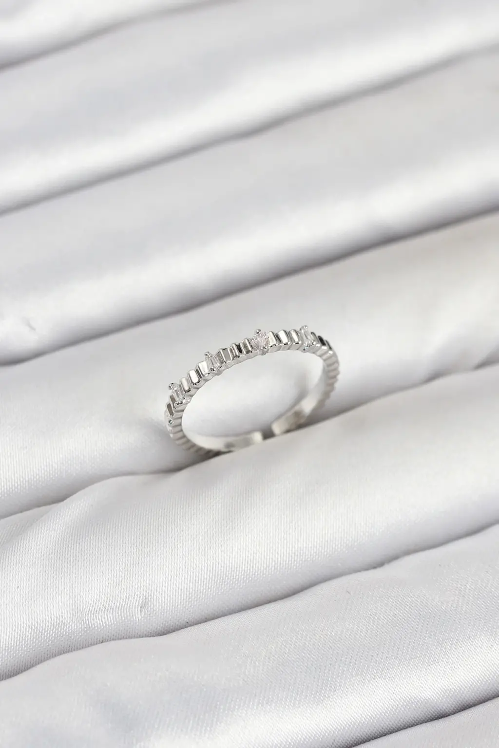 Yalın ve şık tasarımıyla dikkat çeken Gleam Pirinç Gümüş Renk Lazer Kesim Kadın Yüzük, zarif detaylarıyla göz kamaştırıyor.