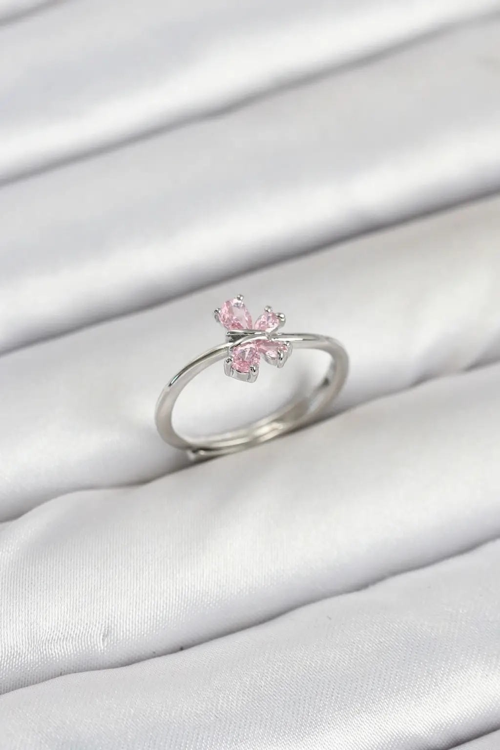 Gleam markasının şıklığı ve zarifliği bir araya getiren Pirinç Gümüş Renk Pembe Kelebek Kadın Yüzük, vazgeçilmeziniz olmaya aday!