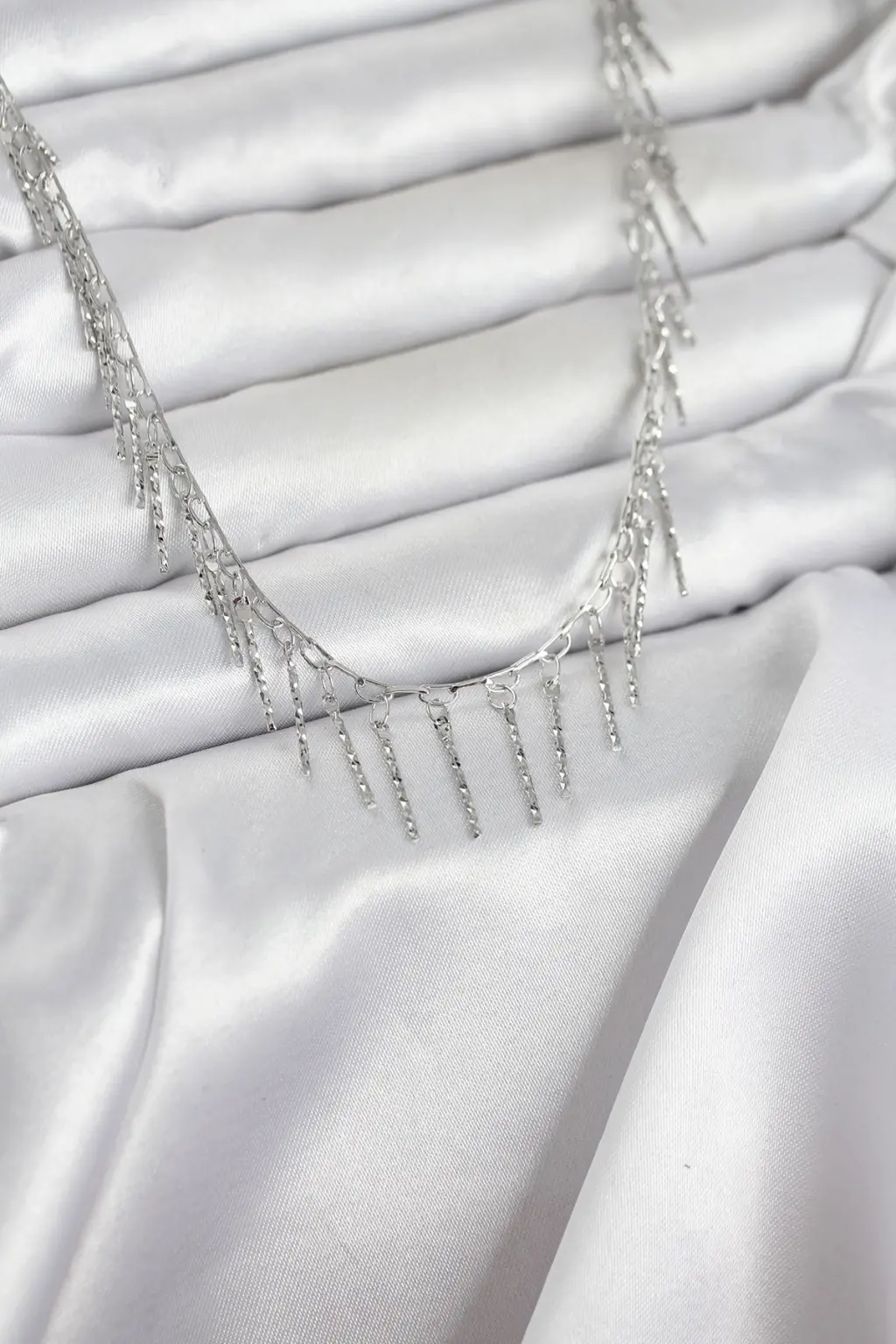 Pirinç Gümüş Renk Saçaklı Model Kadın Kolye Zarif detaylarla, göz alıcı tasarımlarla bezenmiş özel tasarım
