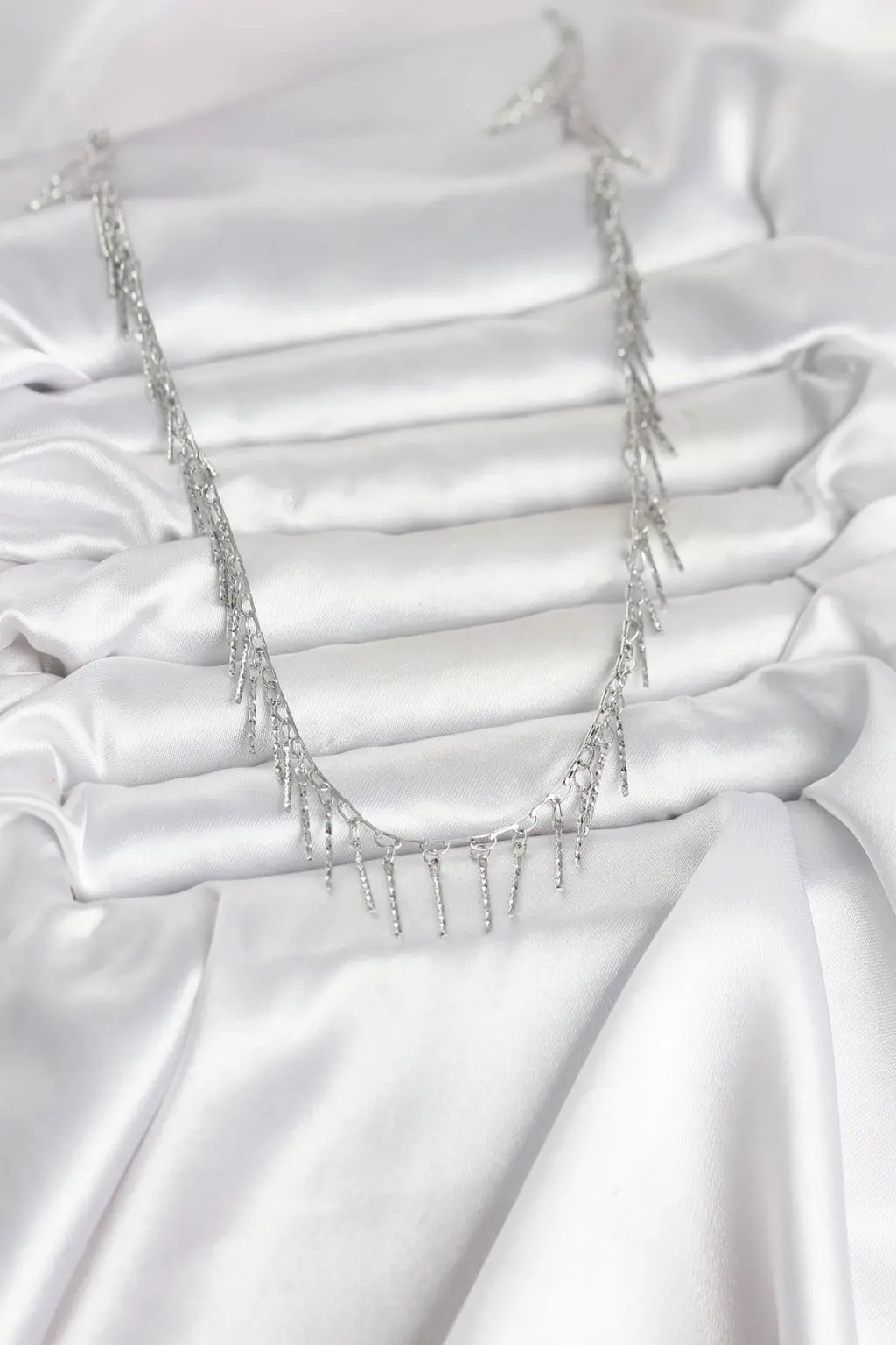 Pirinç Gümüş Renk Saçaklı Model Kadın Kolye Eşşiz tasarımıyla sizlerle. En uygun fiyat garantili kararmaz modelimiz karşınızda.