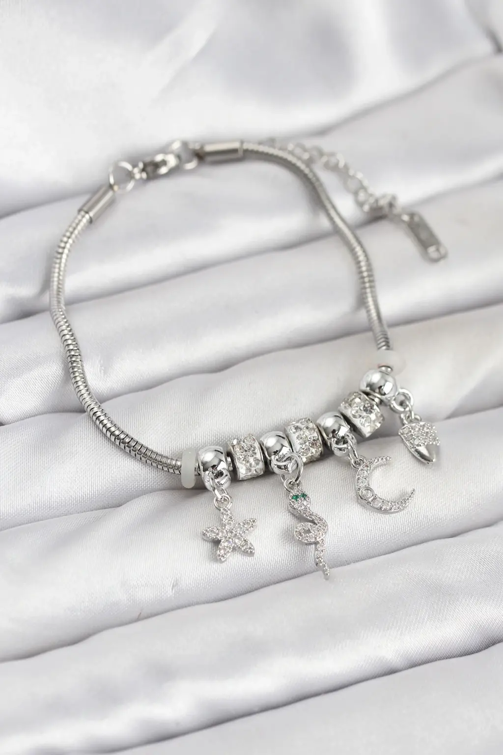 Çelik Gümüş Renk Yılan Charmlı Kadın Bileklik Zarif detaylarla, göz alıcı tasarımlarla bezenmiş özel tasarım