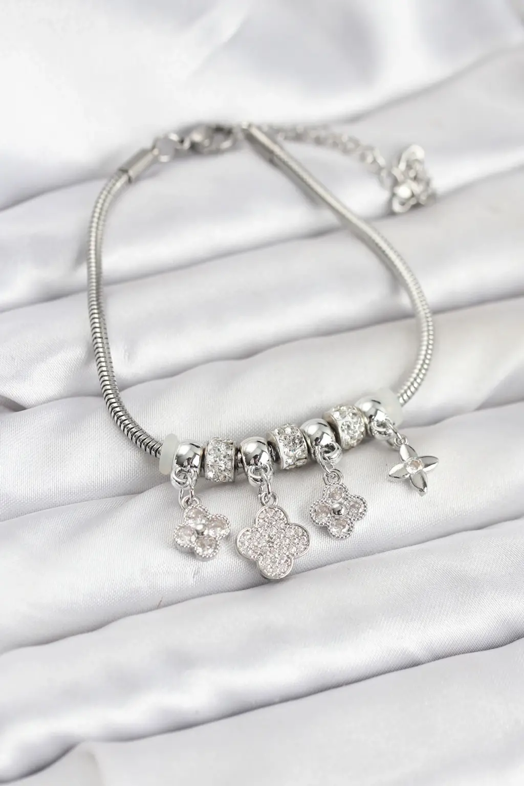 Çelik Gümüş Renk Yonca Model Kadın Bileklik Zarif detaylarla, göz alıcı tasarımlarla bezenmiş özel tasarım