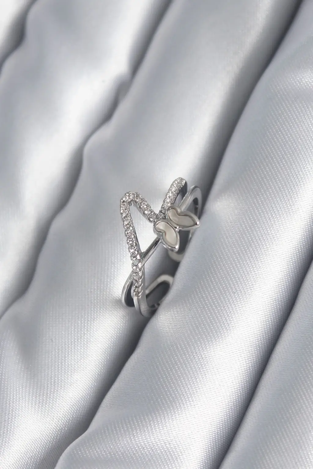 Gümüş Zirkon Taş Detay Kelebek Model Çelik Yüzük Zarif detaylarla, göz alıcı tasarımlarla bezenmiş özel tasarım