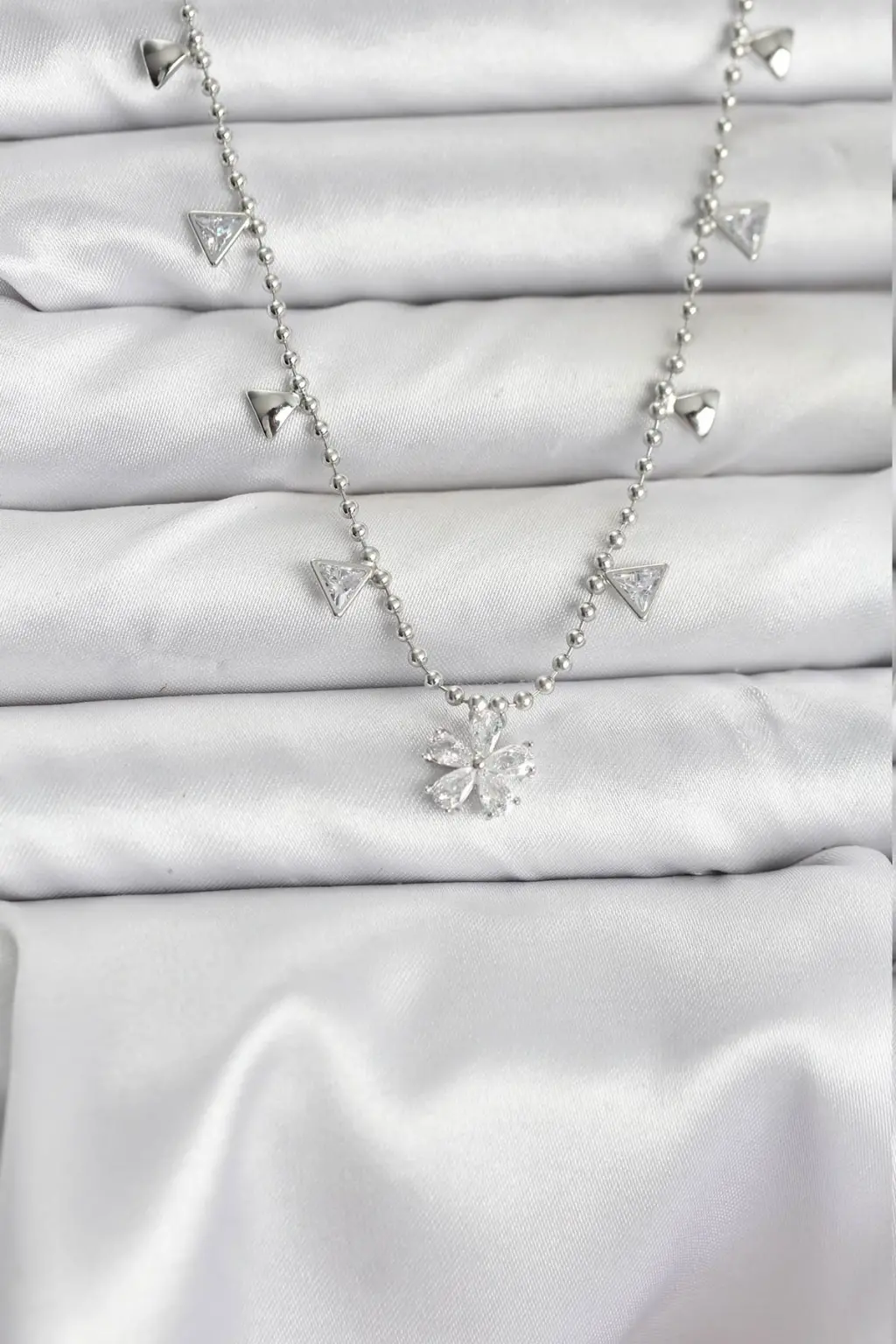 Gleam marka Pirinç Gümüş Renk Zirkon Taşlı Çiçek Model Kadın Kolye, şıklığı ve zarafeti bir arada sunar.