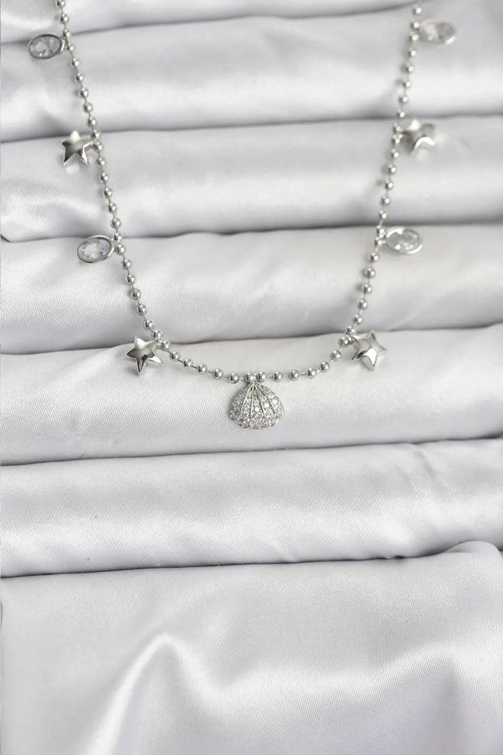 Pirinç Gümüş Renk Zirkon Taşlı Deniz Kabuğu Model Kadın Kolye özel tasarım