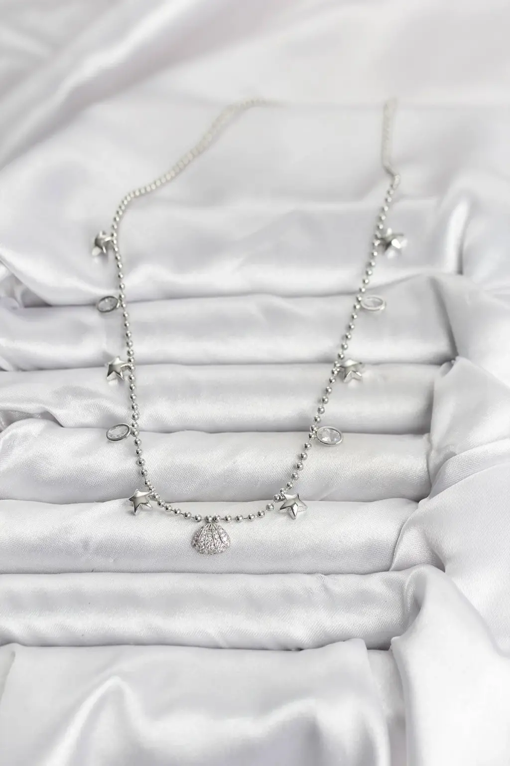 Pirinç Gümüş Renk Zirkon Taşlı Deniz Kabuğu Model Kadın Kolye Eşşiz tasarımıyla sizlerle. En uygun fiyat garantili kararmaz modelimiz karşınızda.