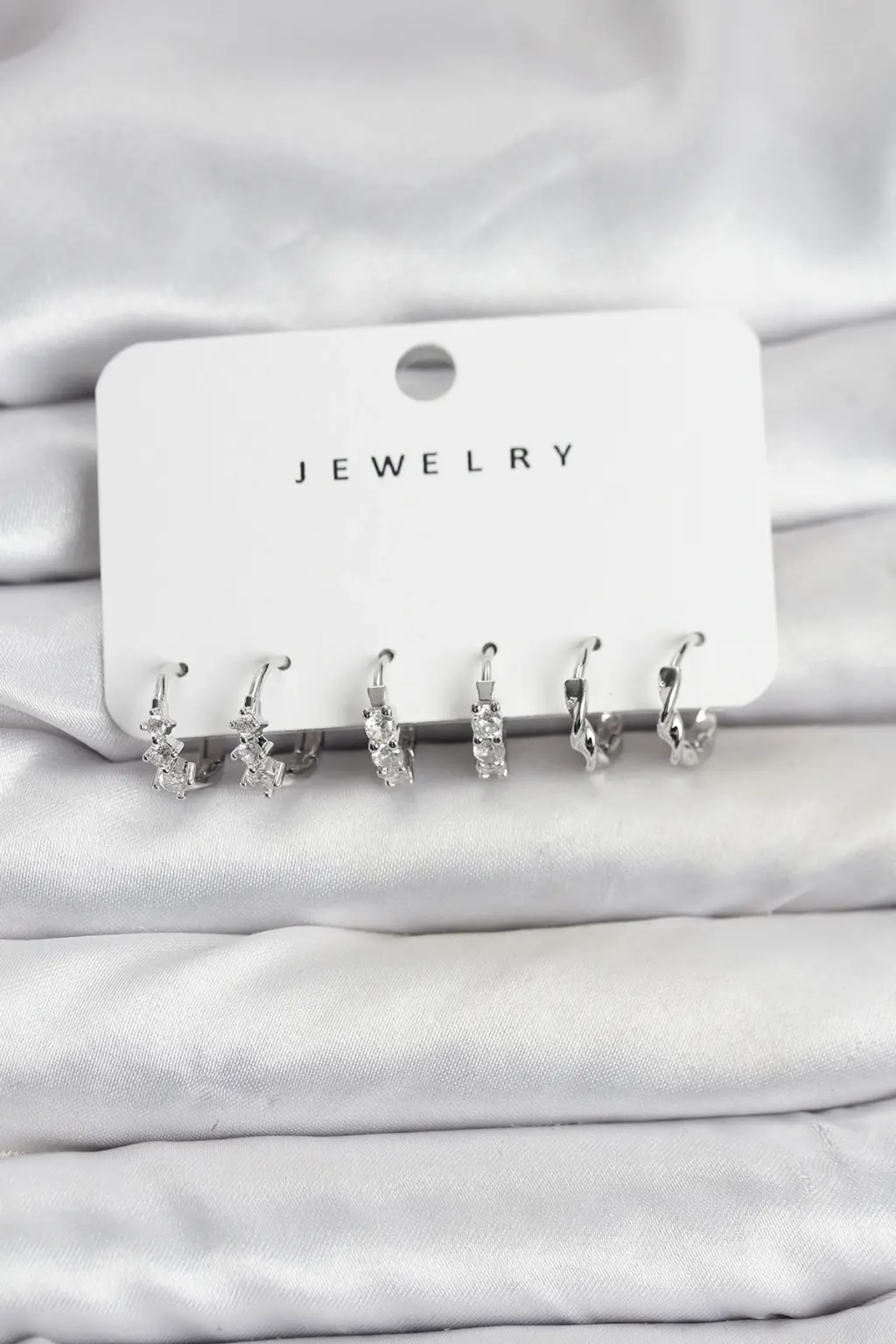 Pirinç Gümüş Renk Zirkon Taşlı Kadın Küpe Seti, Gleam markası ile şıklığı ve zarafeti bir arada sunuyor.