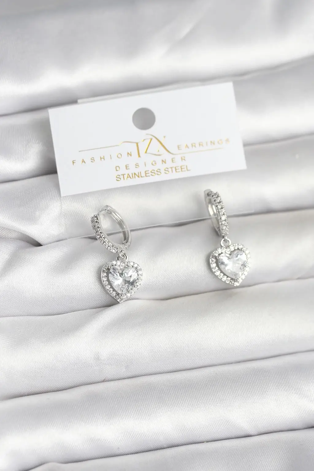 Pirinç Gümüş Renk Zirkon Taşlı Kalp Model Kadın Küpe Eşşiz tasarımıyla sizlerle. En uygun fiyat garantili kararmaz modelimiz karşınızda.