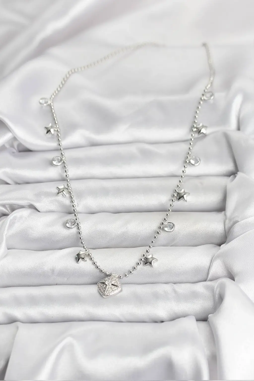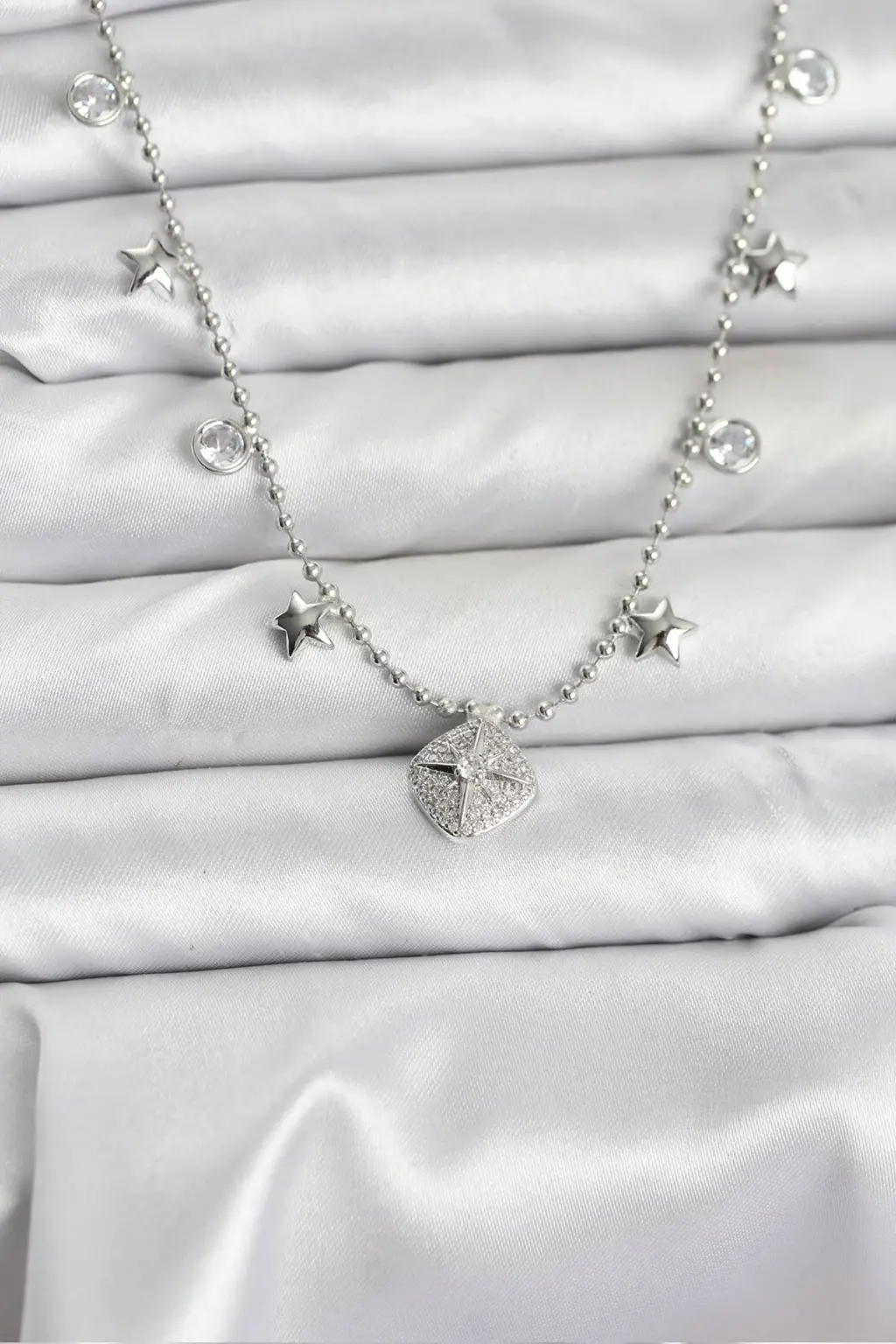 Pirinç Gümüş Renk Zirkon Taşlı Kutup Yıldızı Model Kadın Kolye Eşşiz tasarımıyla sizlerle. En uygun fiyat garantili kararmaz modelimiz karşınızda.