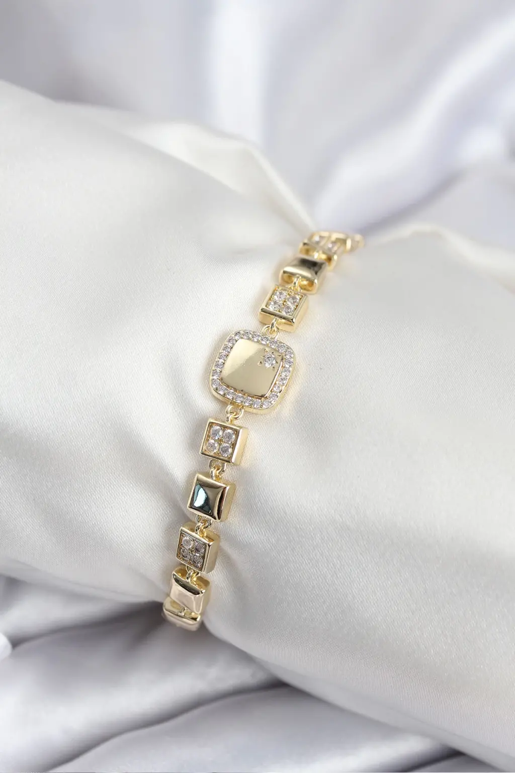 Pirinç VIP Seri Gold Renk Zirkon Taşlı Model Kadın Bileklik Zarif detaylarla, göz alıcı tasarımlarla bezenmiş özel tasarım