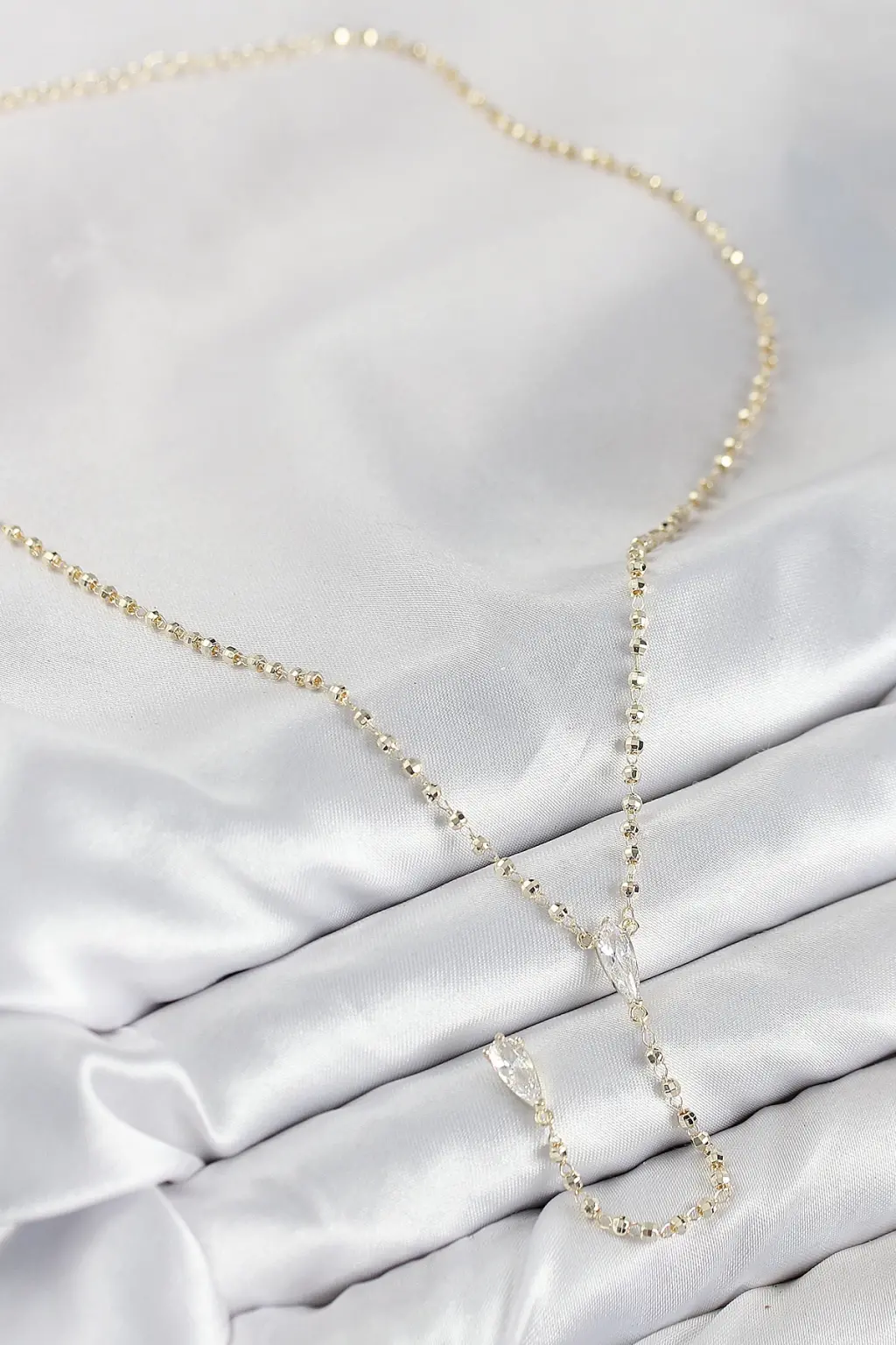 Pirinç Zirkon Taşlı Gold Renk Kadın Y Kolye