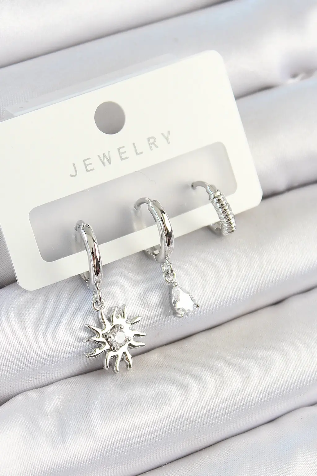 Küpe, her kombinin tamamlayıcı parçasıdır Pirinç Zirkon Taşlı Güneş Model Gümüş Renk 3'lü Çift Kadın Küpe Set tam size göre. Gleam'in