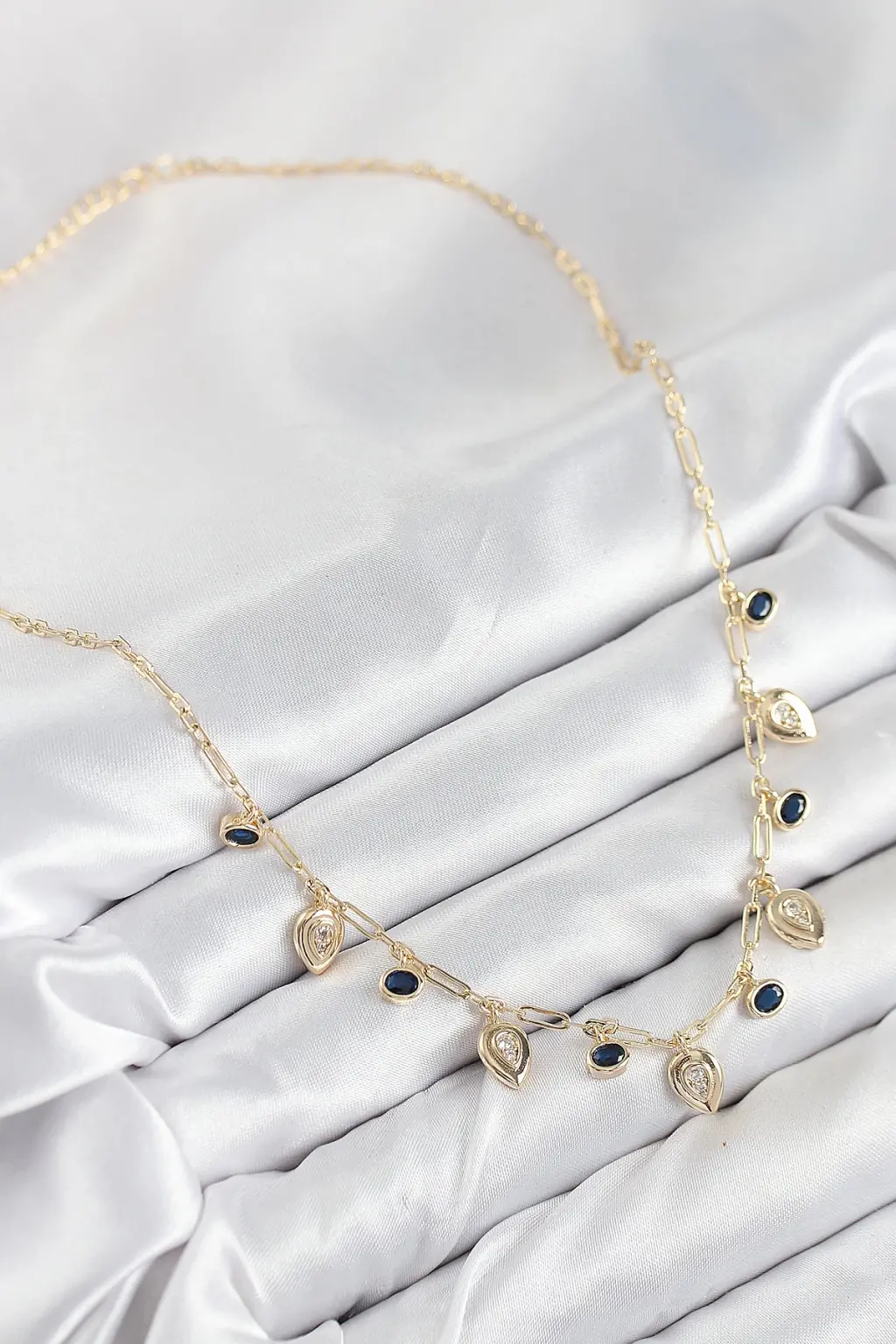 Pirinç Zirkon Taşlı Sallantılı Damla Model Gold Renk Kadın Kolye Eşşiz tasarımıyla sizlerle. En uygun fiyat garantili kararmaz modelimiz karşınızda.