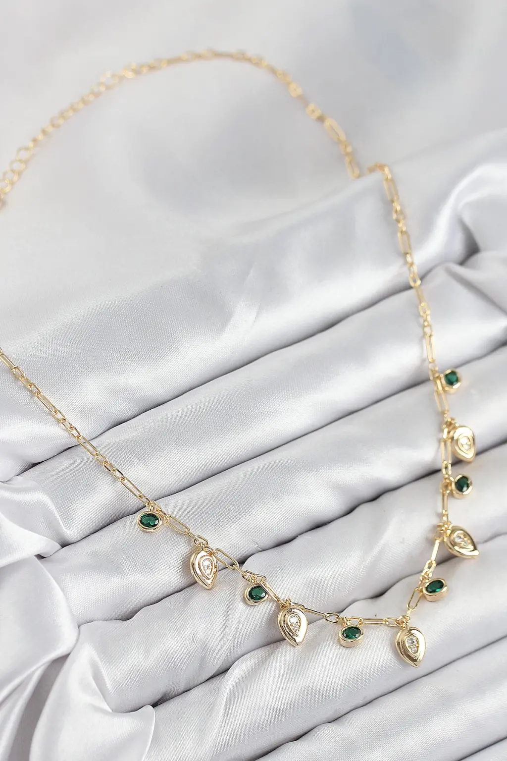 Pirinç Zirkon Taşlı Sallantılı Damla Model Gold Renk Kadın Kolye Eşşiz tasarımıyla sizlerle. En uygun fiyat garantili kararmaz modelimiz karşınızda.
