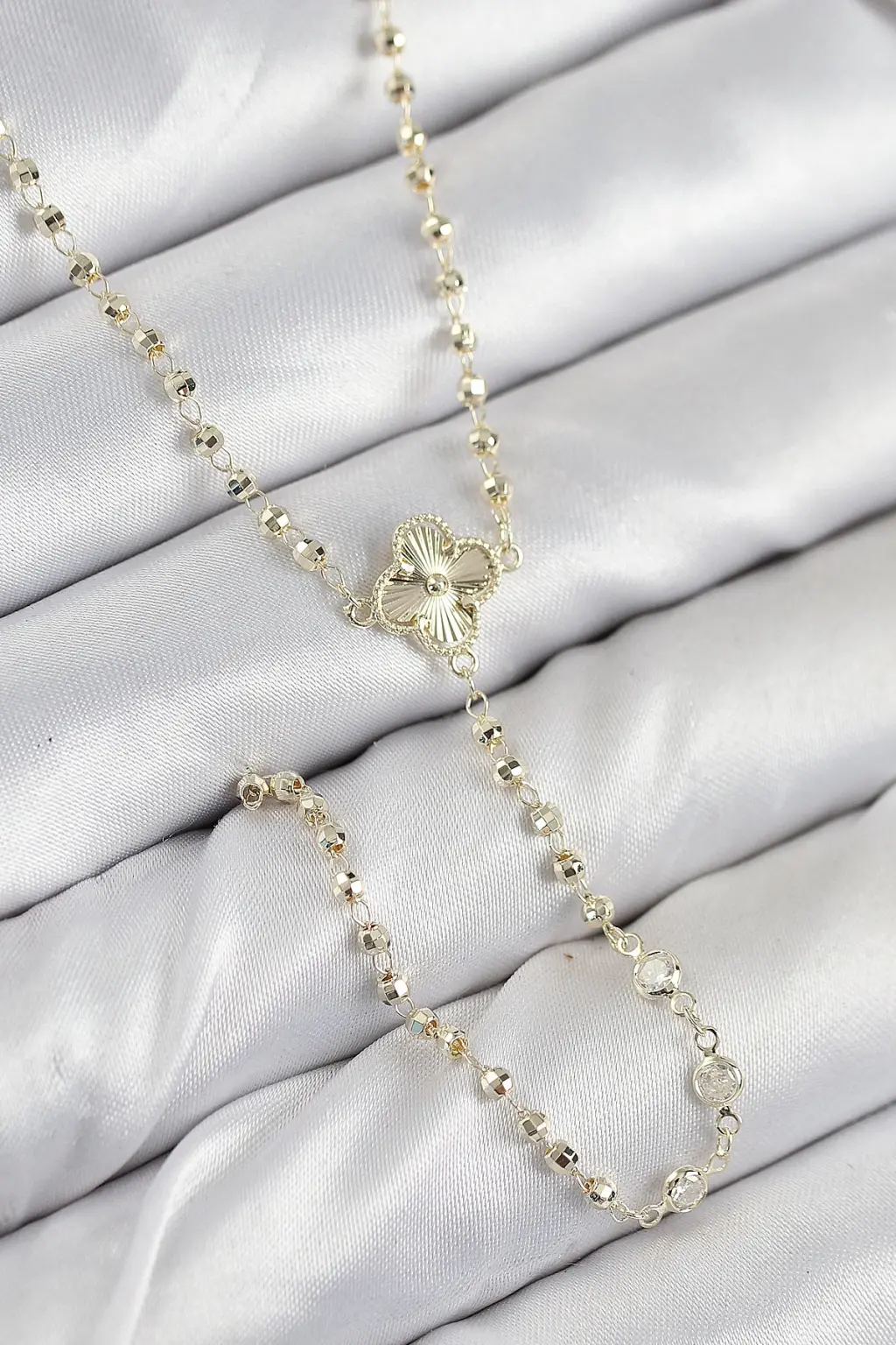Pirinç Zirkon Taşlı Yonca Model Gold Renk Kadın Y Kolye özel tasarım