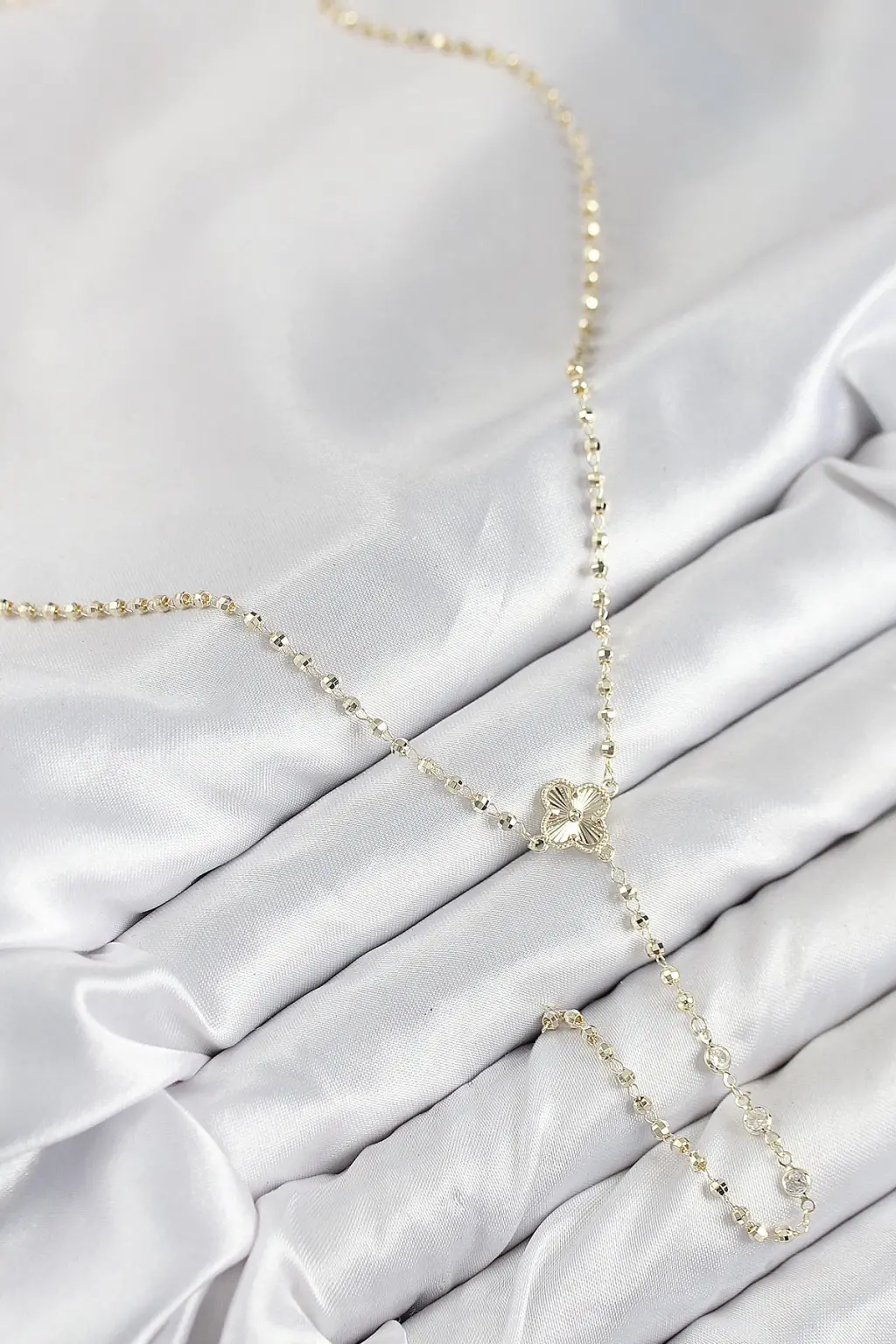 Pirinç Zirkon Taşlı Yonca Model Gold Renk Kadın Y Kolye Zarif detaylarla, göz alıcı tasarımlarla bezenmiş özel tasarım