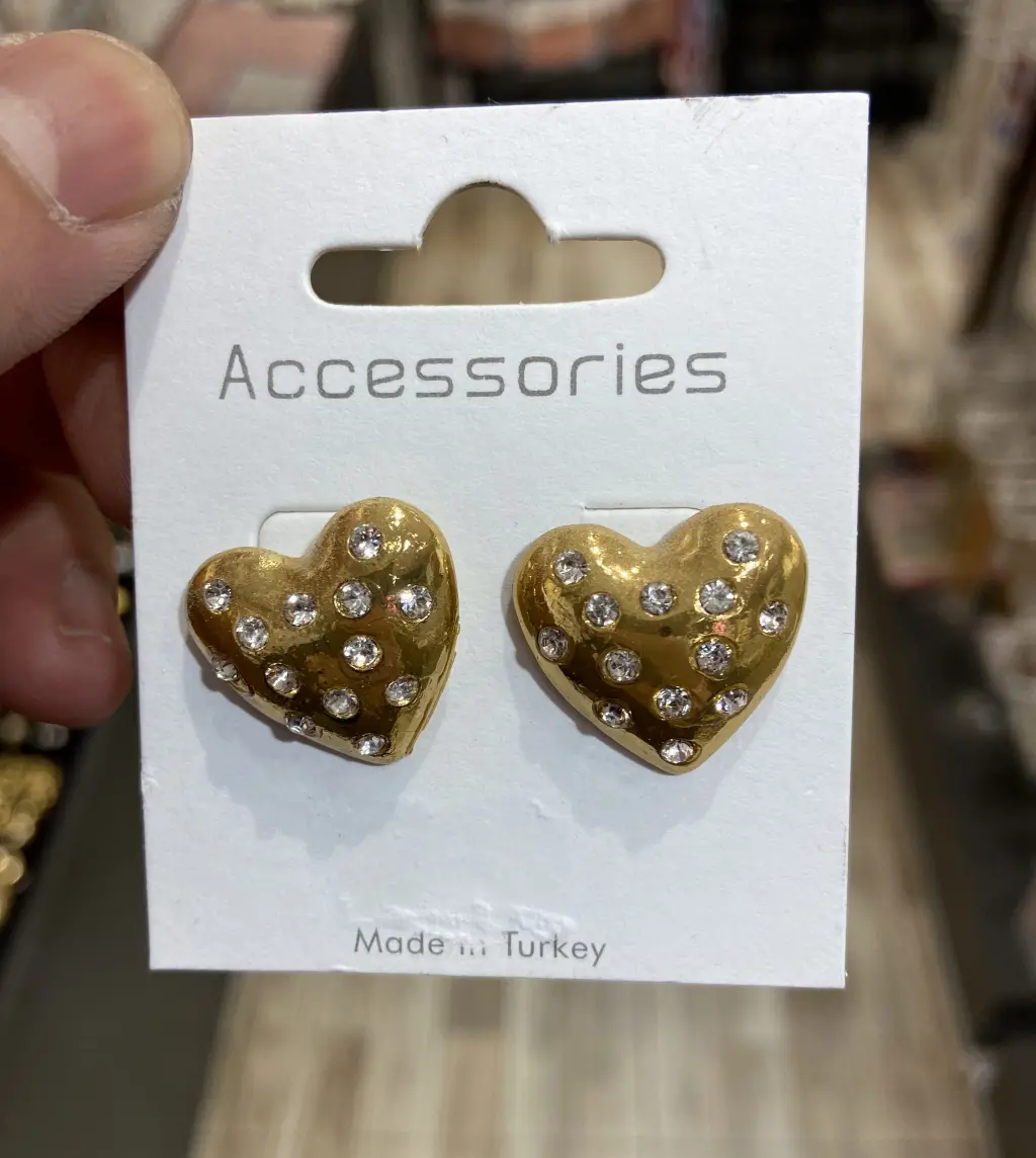 Sarı Renk Büyük Taşlı Kalpli Kadın Küpesi Çelik