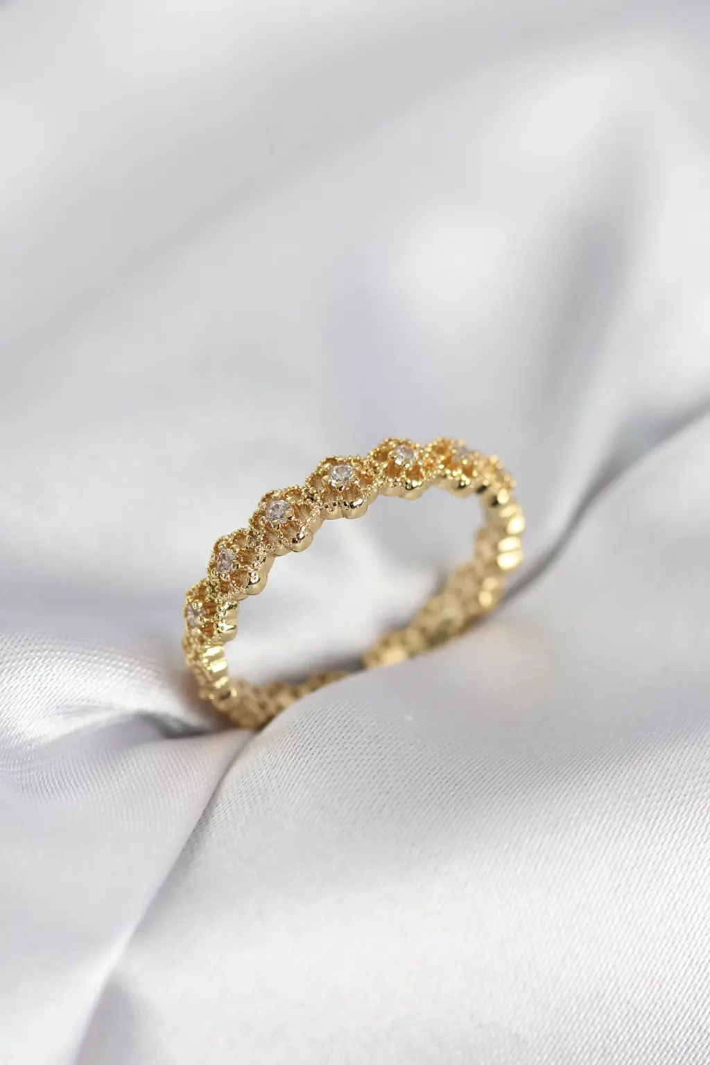 Sıralı Çiçek Model Gold Renk Zirkon Taşlı Kadın Yüzük Zarif detaylarla, göz alıcı tasarımlarla bezenmiş özel tasarım