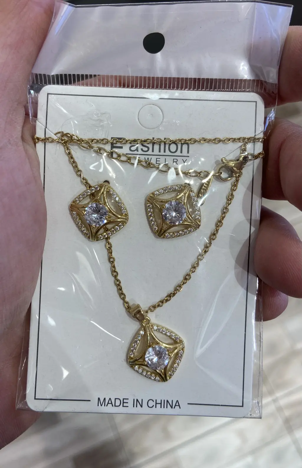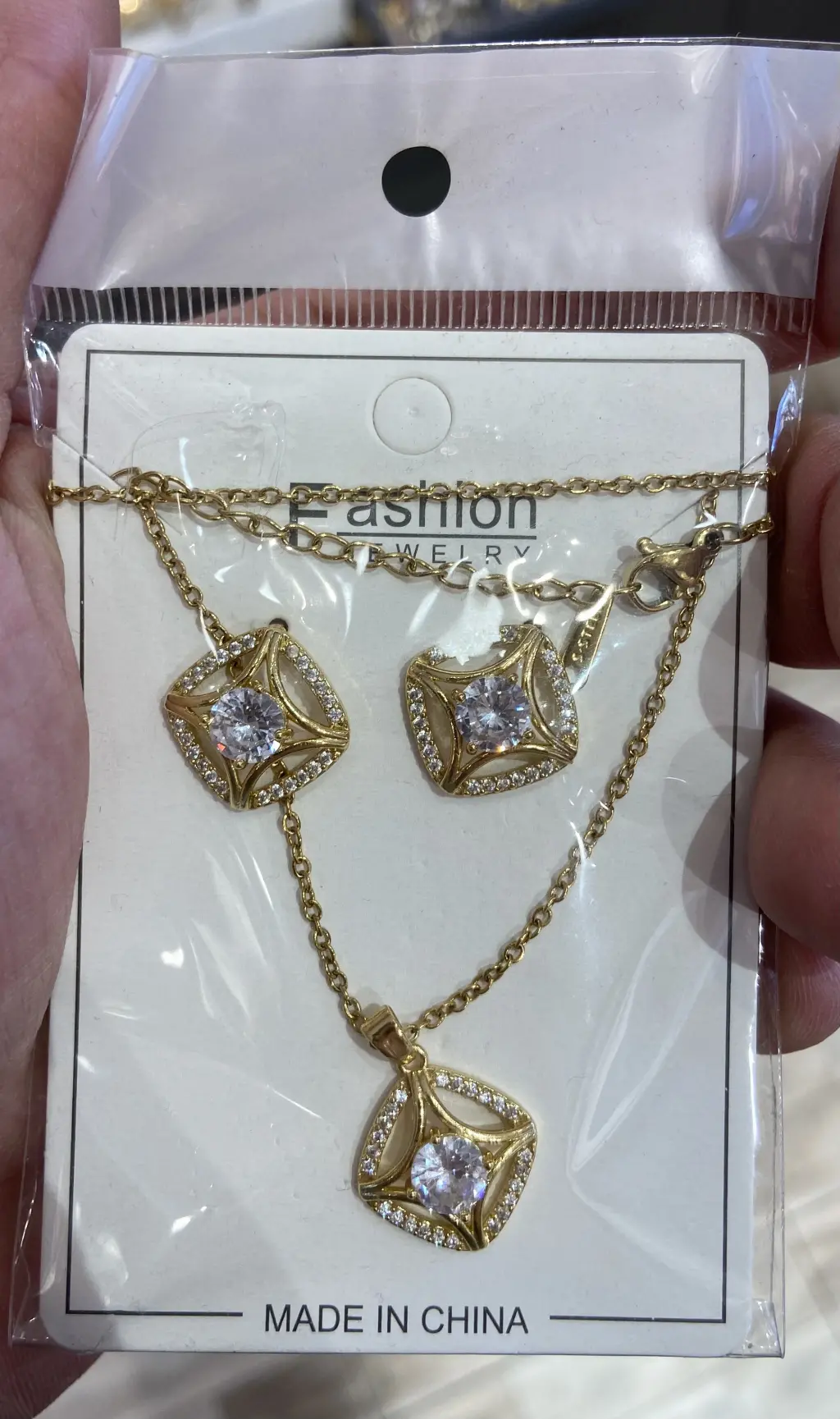 Tektaş Pırlanta Motifli Kare Model Altın Kaplama Kolye Küpe Takı Seti