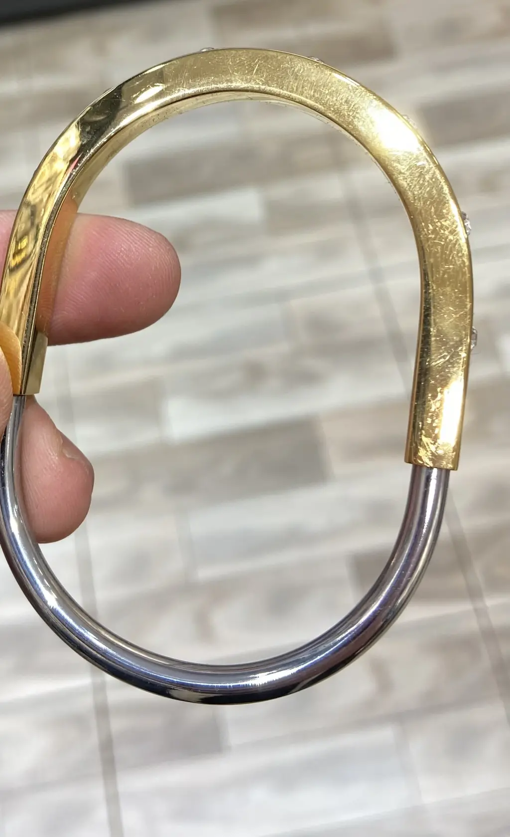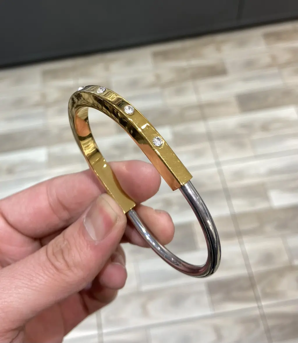 Tiffany Model İki Renkli (Altın-Gümüş) Kelepçe Bilezik Eşşiz tasarımıyla sizlerle. En uygun fiyat garantili kararmaz modelimiz karşınızda.