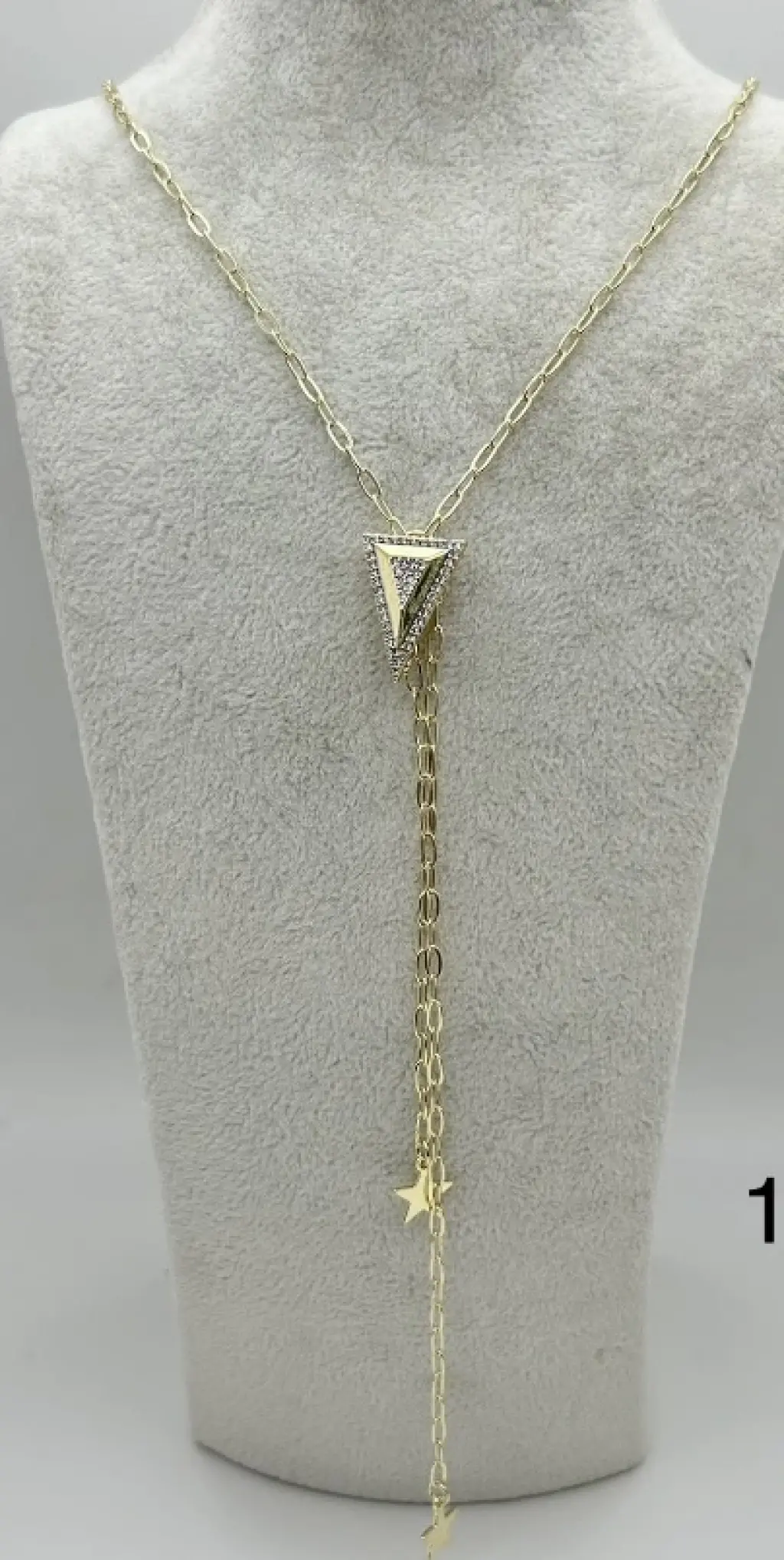Üçgen Uzun Y Kolye Taşlı Altın Kaplama