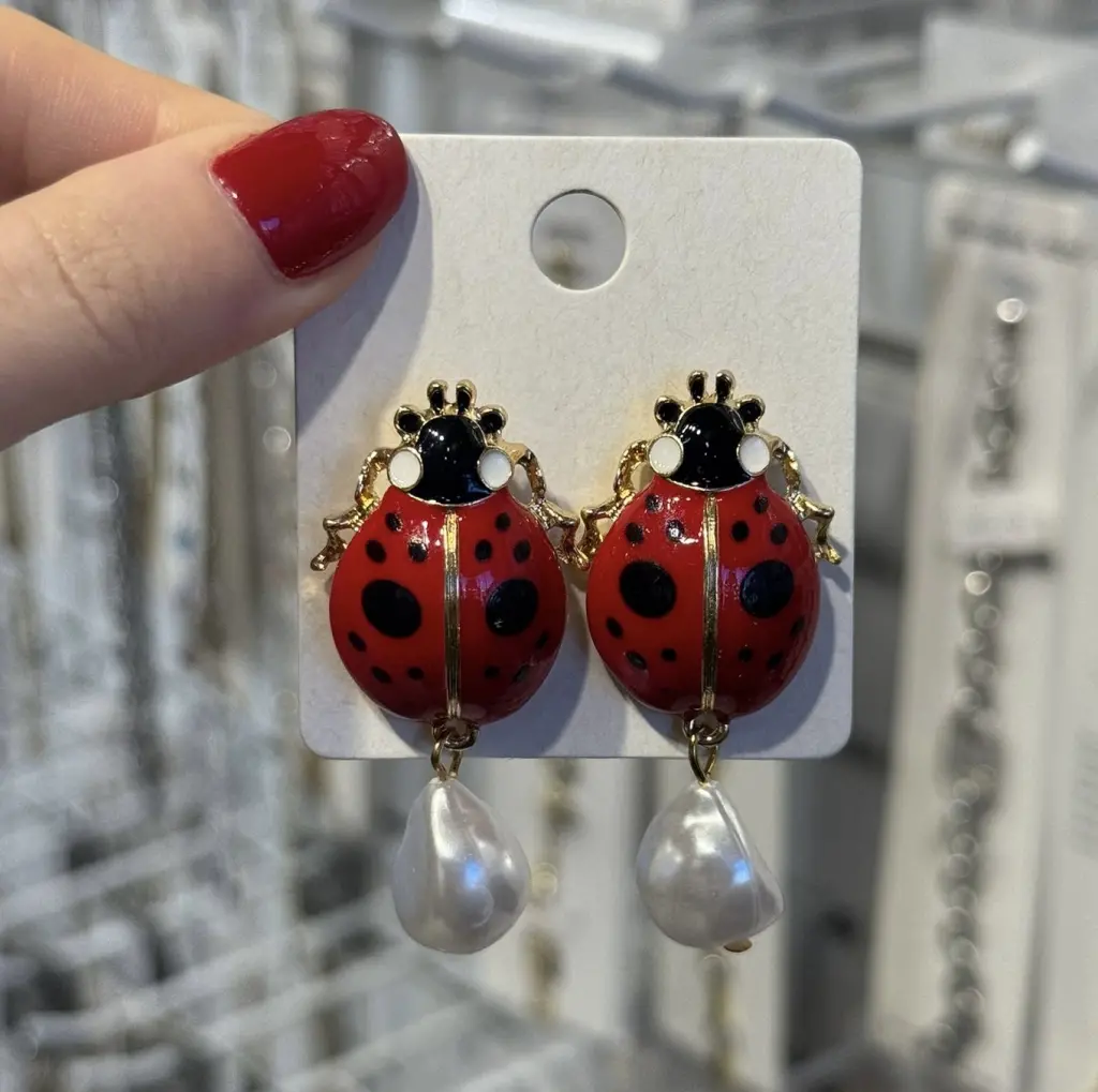 Uğur Böceği Figürlü İnci Detaylı Kadın Küpe