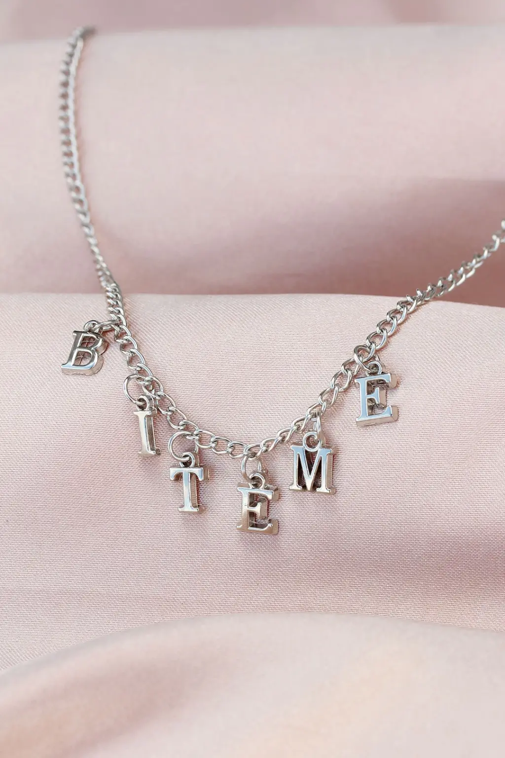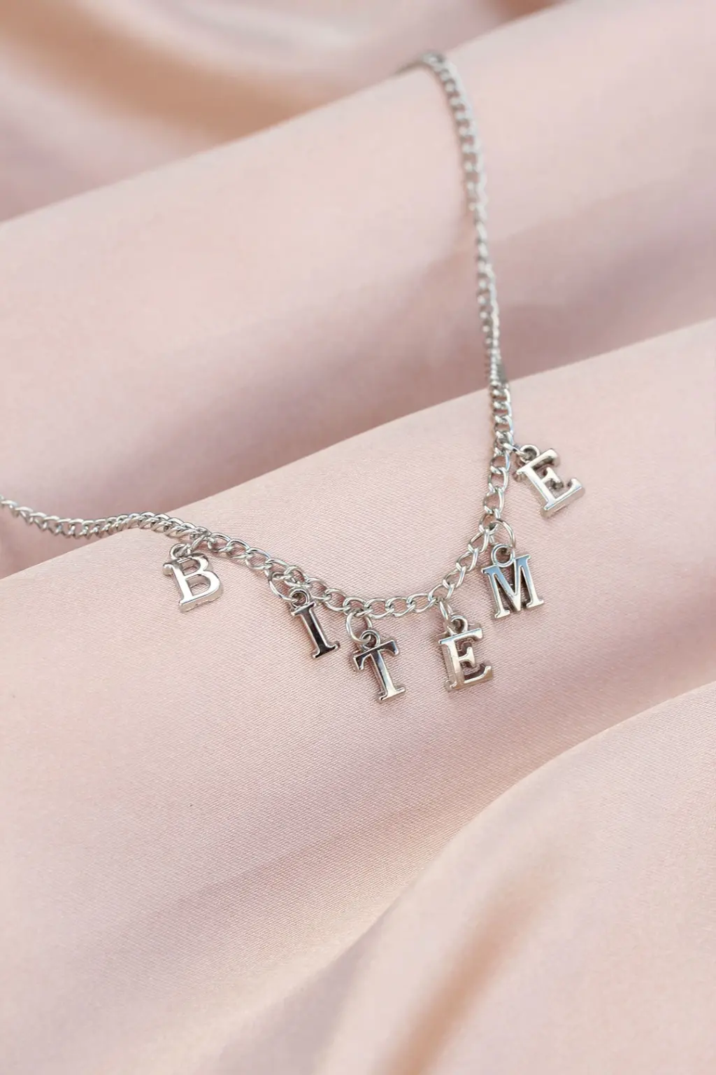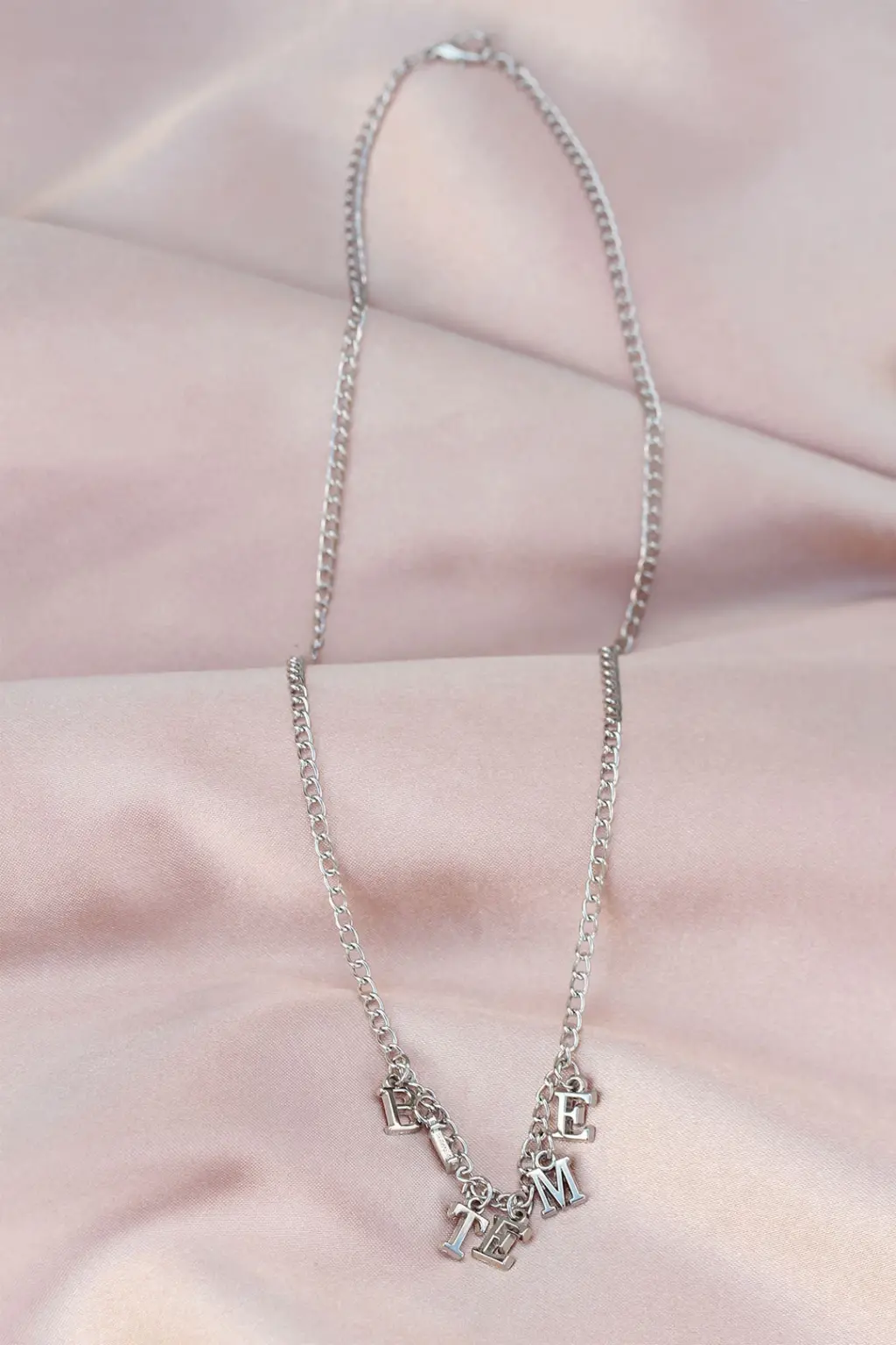 Yeni Sezon Biteme Yazılı Gümüş Renk Sallantılı Kadın Kolye özel tasarım