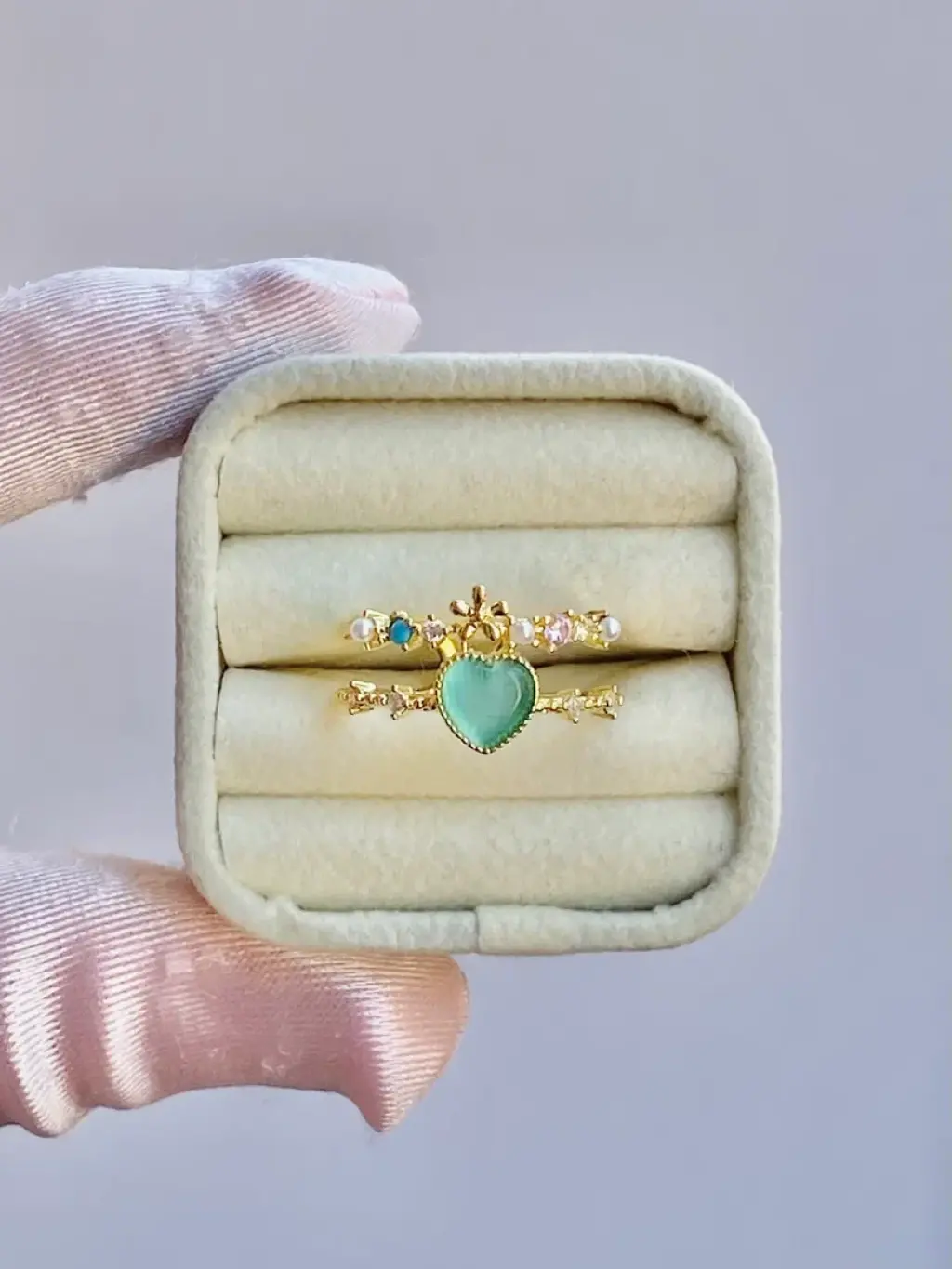 Ayarlanabilir yapısı sayesinde her parmak ölçüsüne uyum sağlayan bu yüzük, hem günlük kullanıma hem de özel kombinlere kolayca uyarlanabilir. Pastel taş detaylarının hafif ışıltısı romantik bir hava katarken, gold dokusu tasarımı daha sıcak ve sofistike bir hale getirir.
