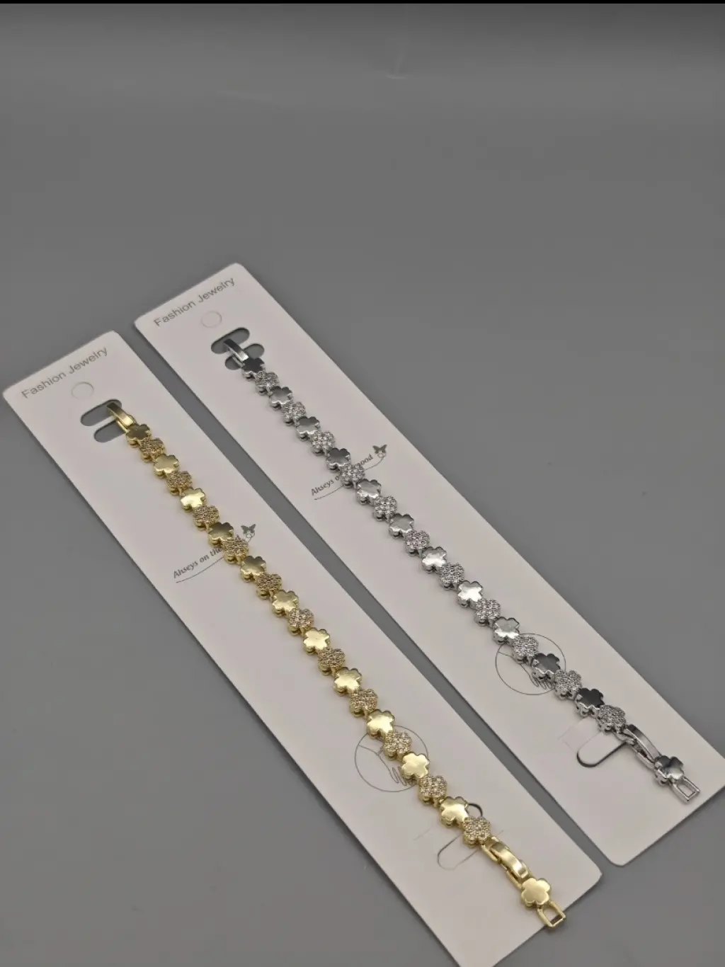 Yonca Desenli Vip Taşlı Altın Kaplama Gurmet Bileklik, Gleam markasıyla, şıklığı ve zarafeti bir arada sunuyor. Göz alıcı tasarımı ve özel detayları ile her tarza uyum sağlayan bu bileklik, özel günlerde veya günlük kullanımda tercih edilebilir.